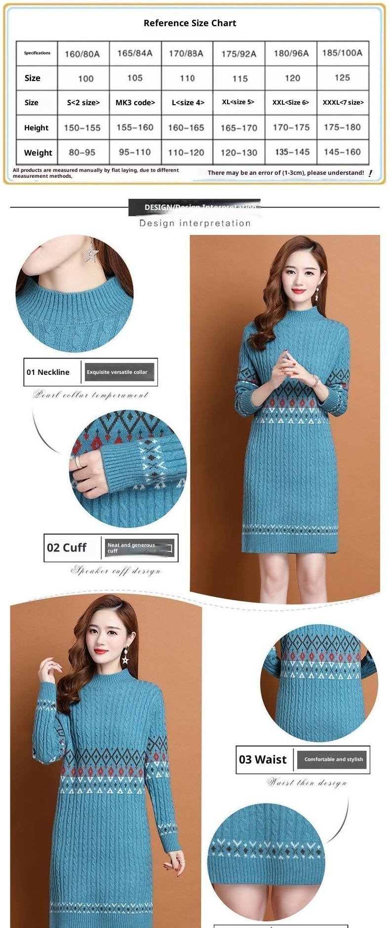 Thermal Head Cover Half Turtleneck Mid-length Bottoming Sweater Women's Woolen Skirt