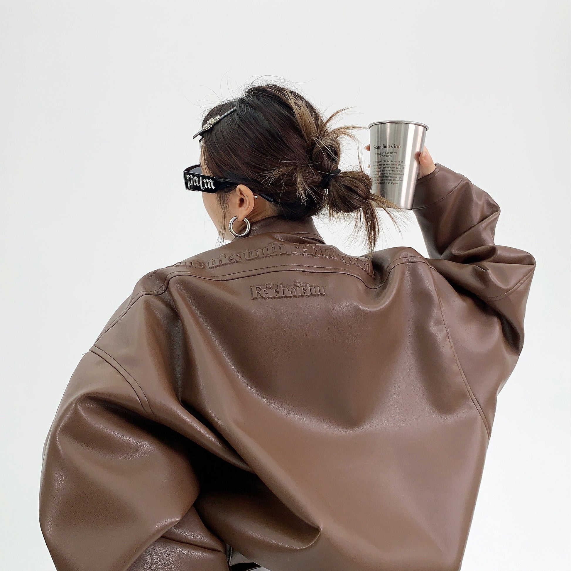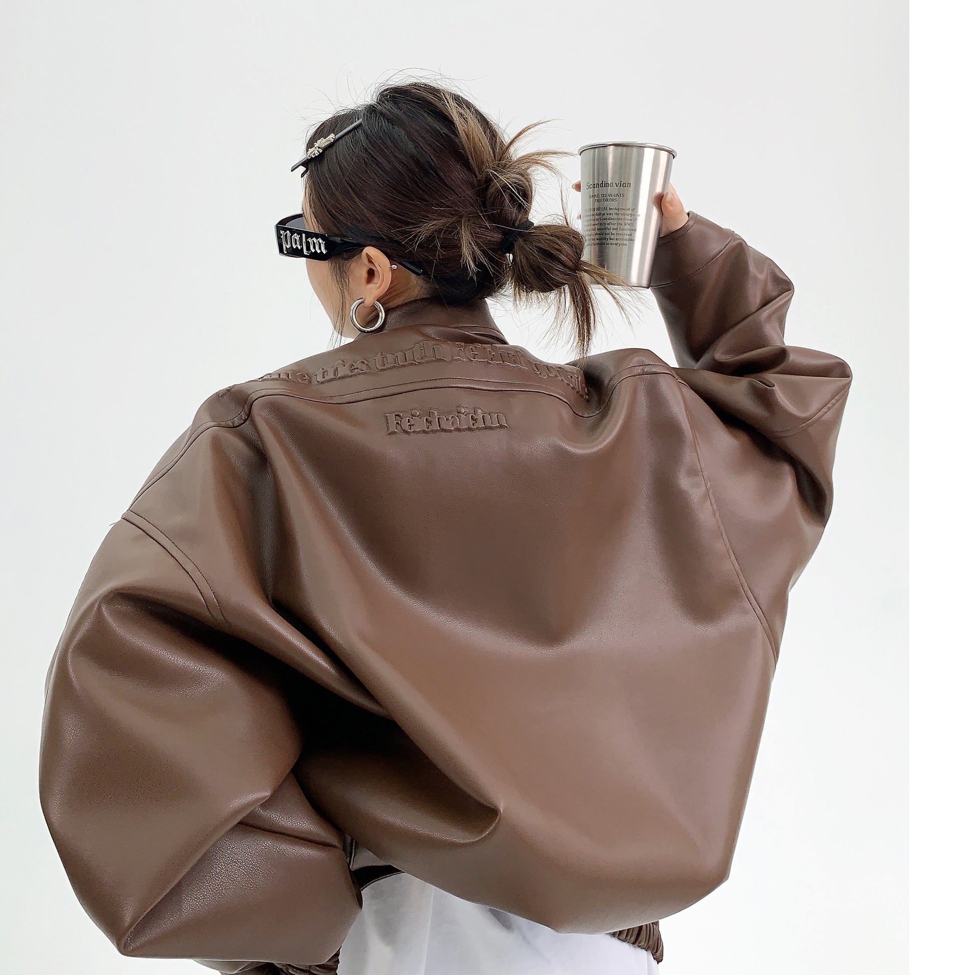 Troniche Steel Stamp PU Leather Motorcycle Jacket For Women