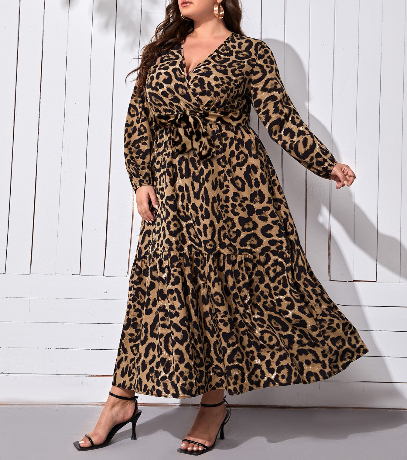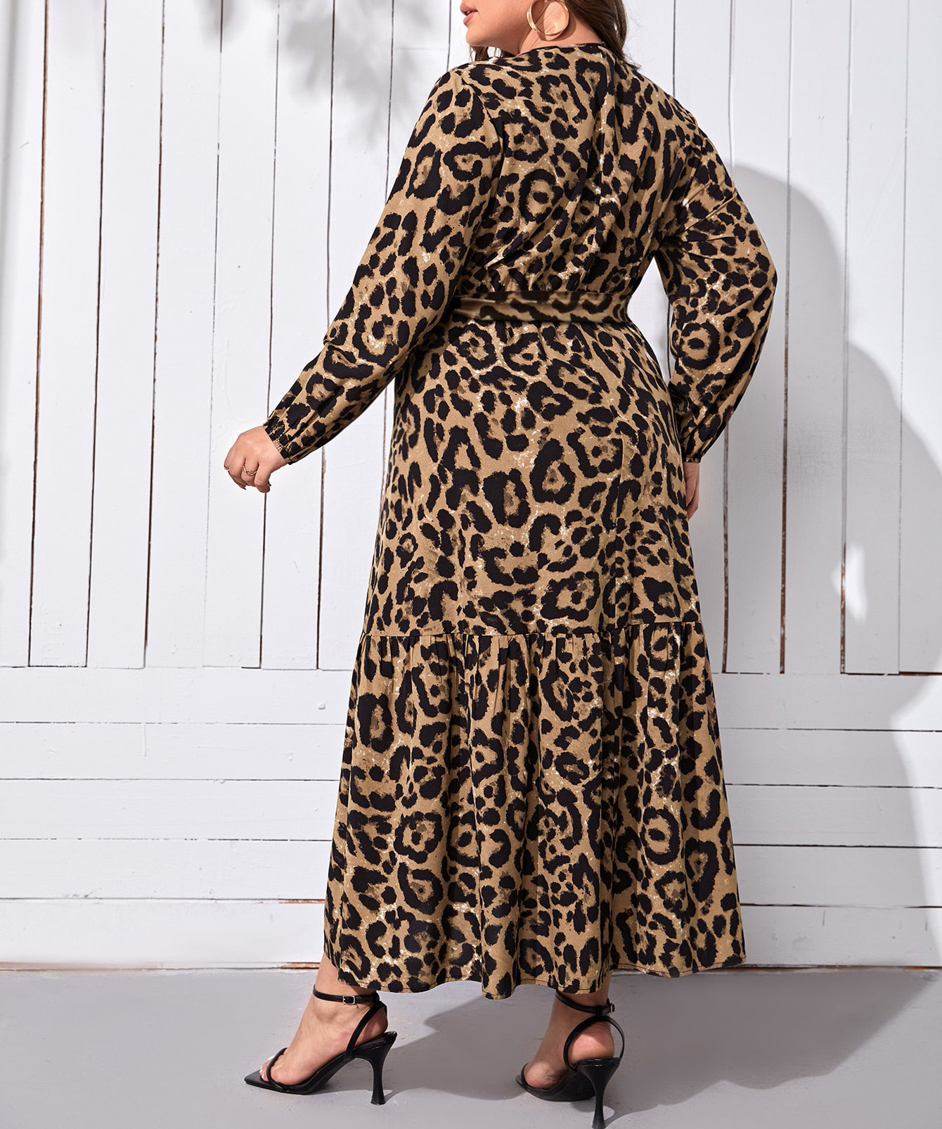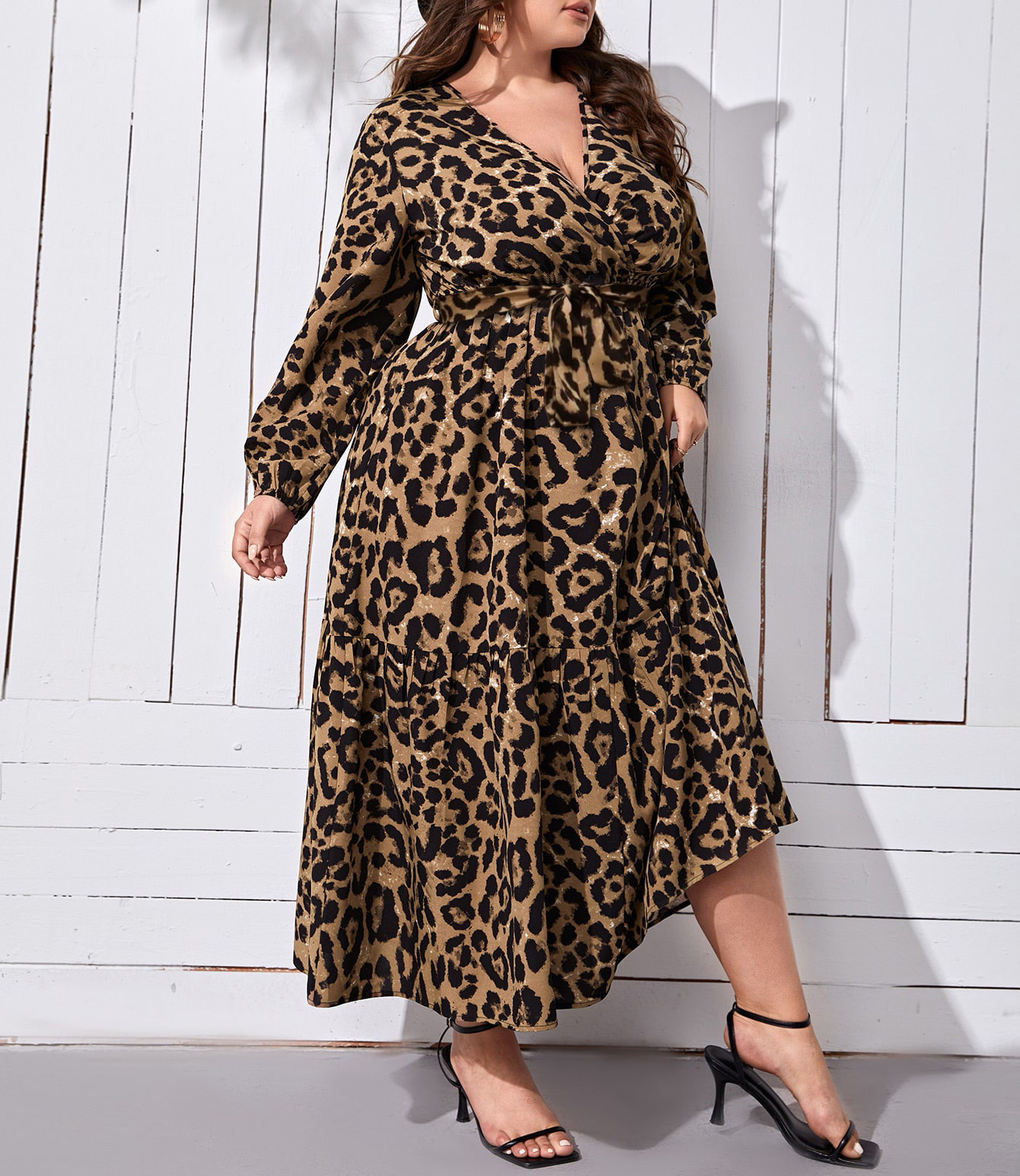 V-neck Leopard Print Printed Casual Long Dress
