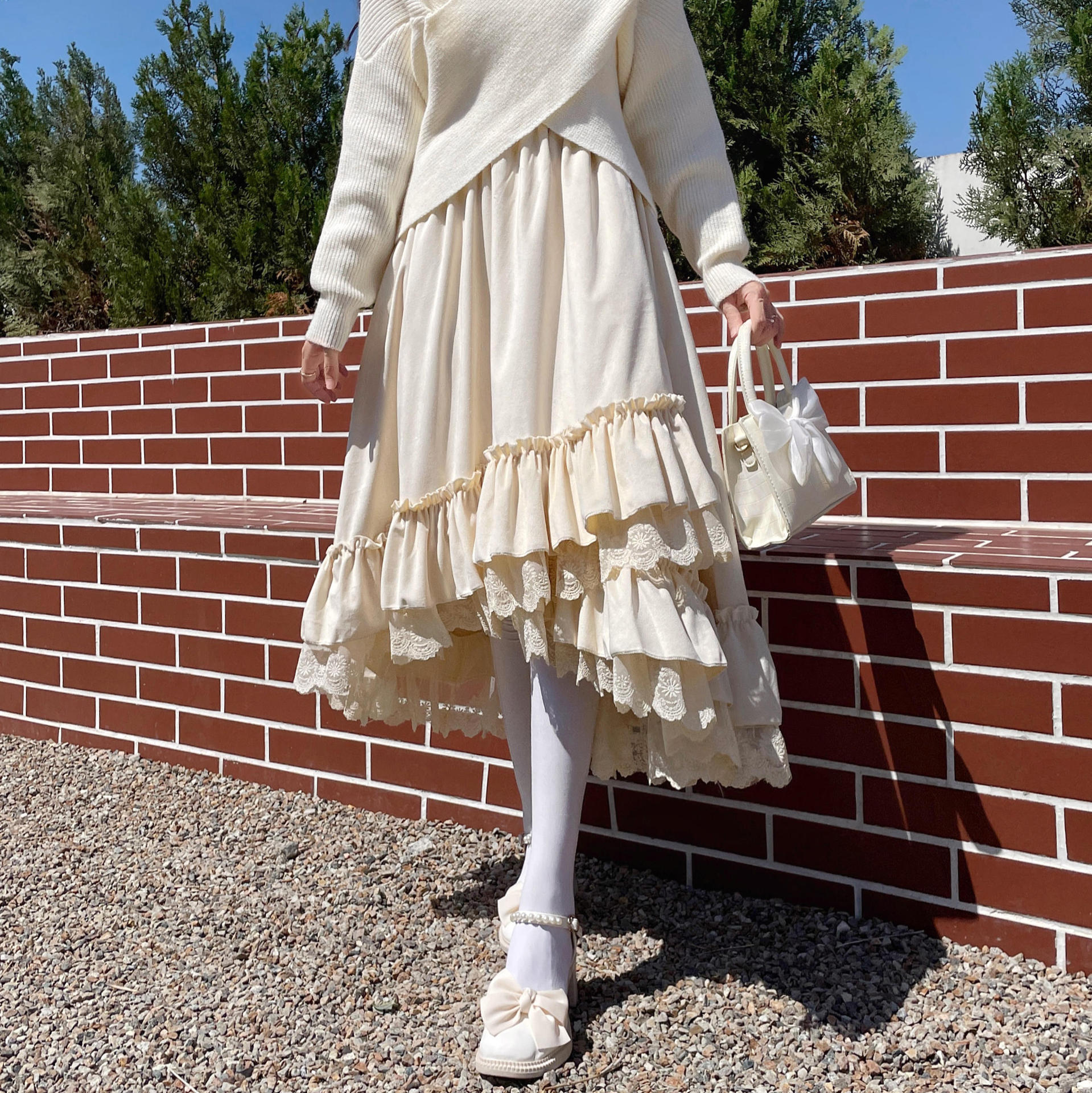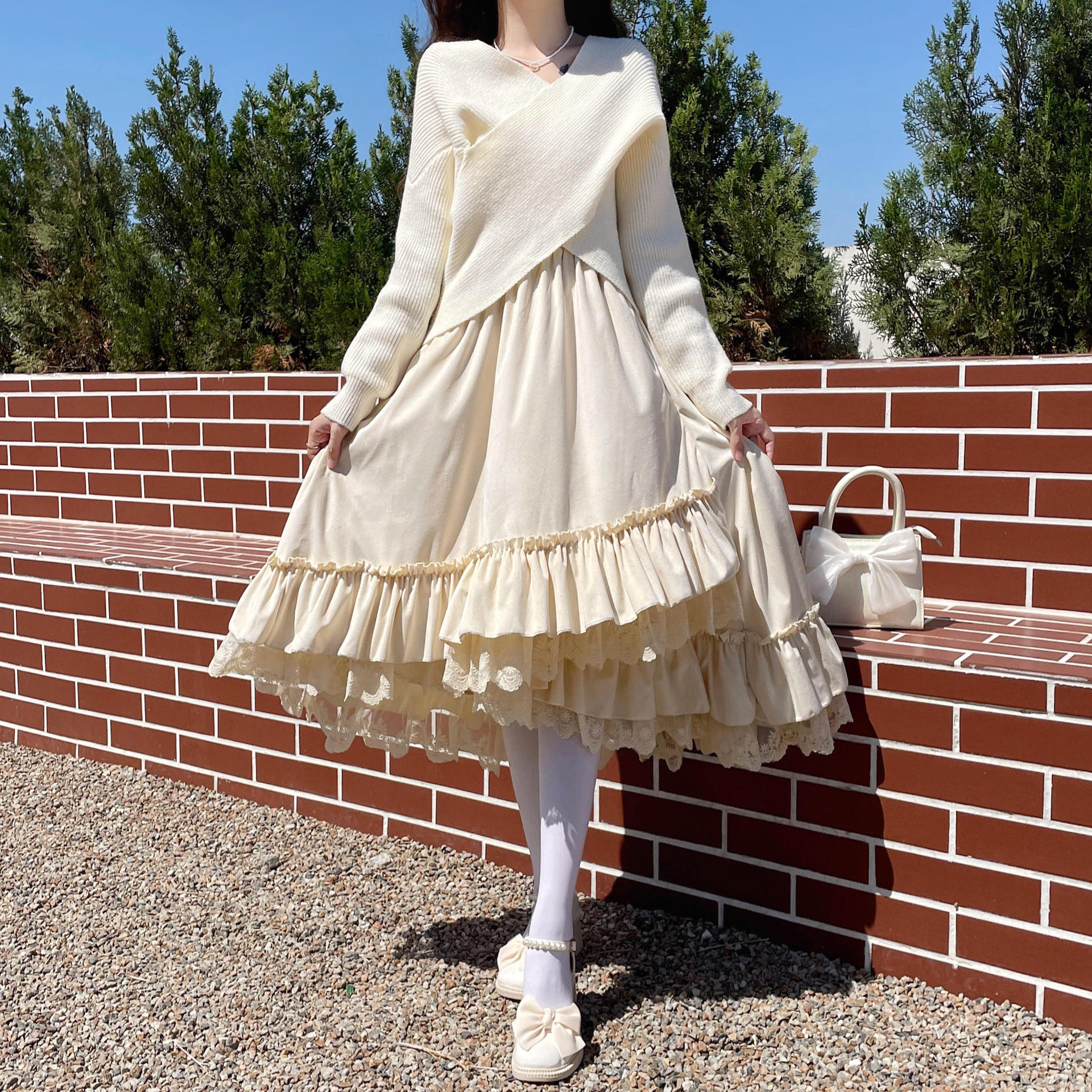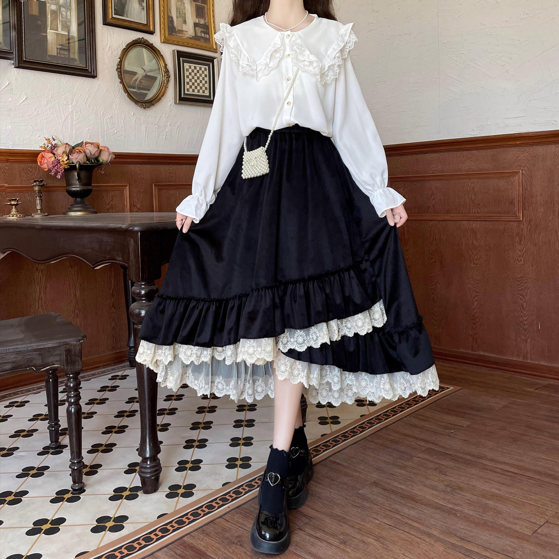 Velvet Dress Thick Retro Lace Swing Design Cake Dress