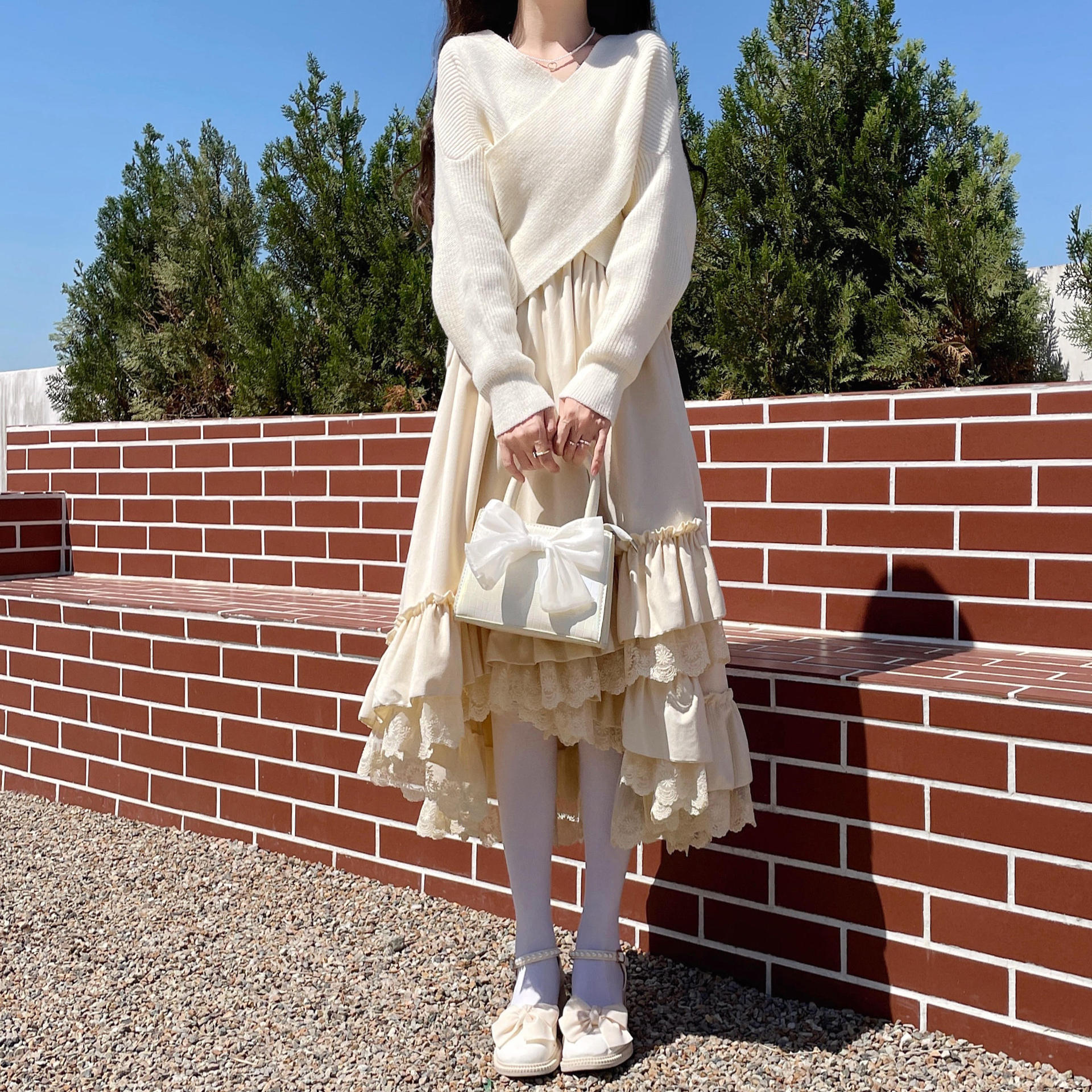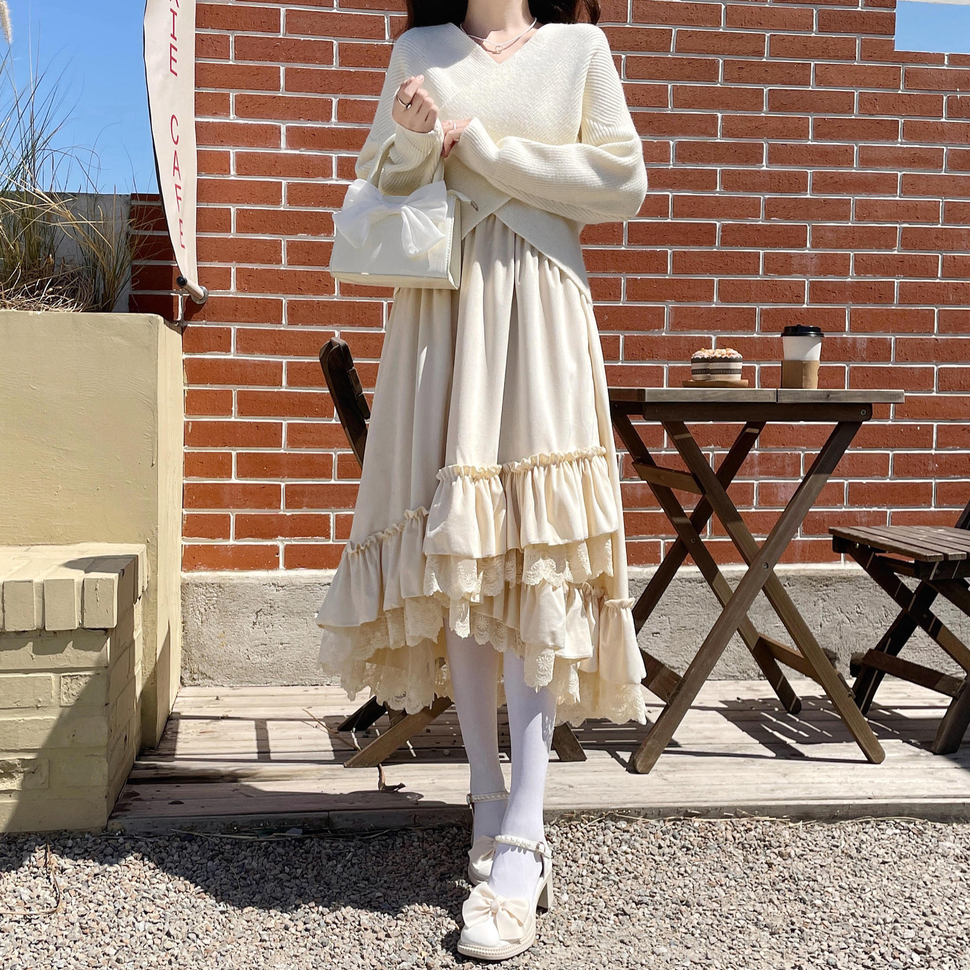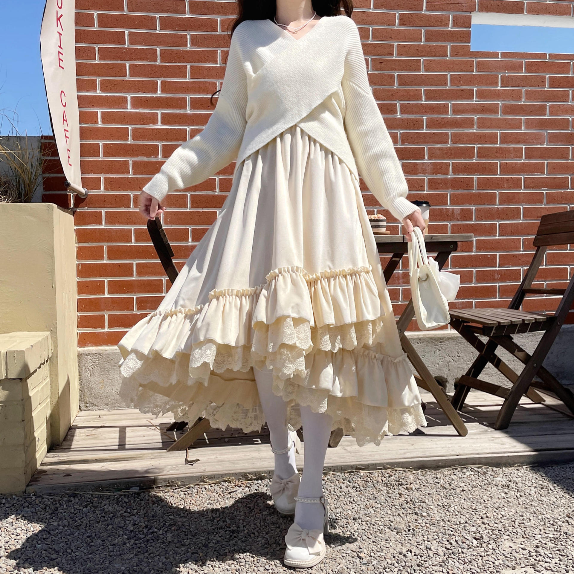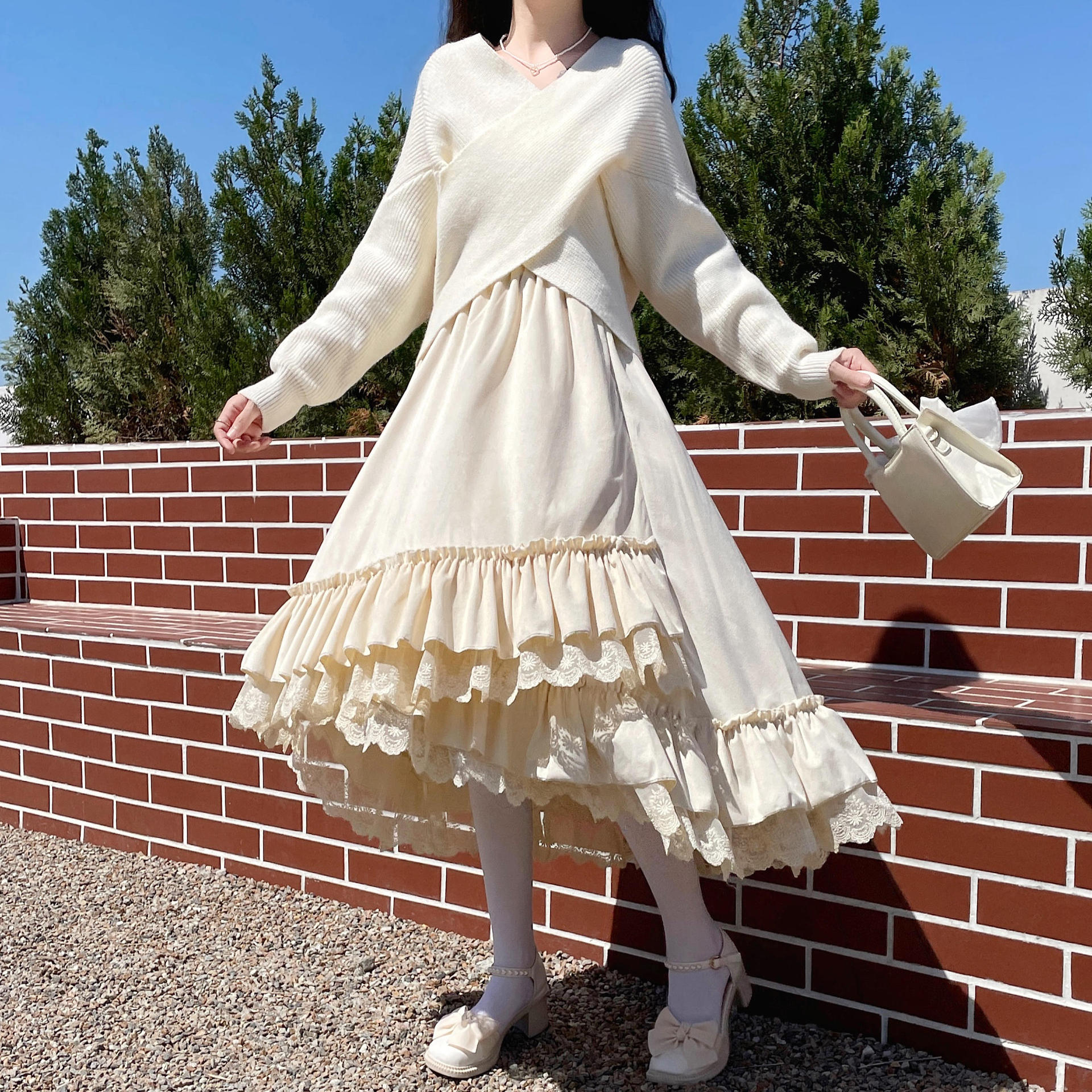 Velvet Dress Thick Retro Lace Swing Design Cake Dress