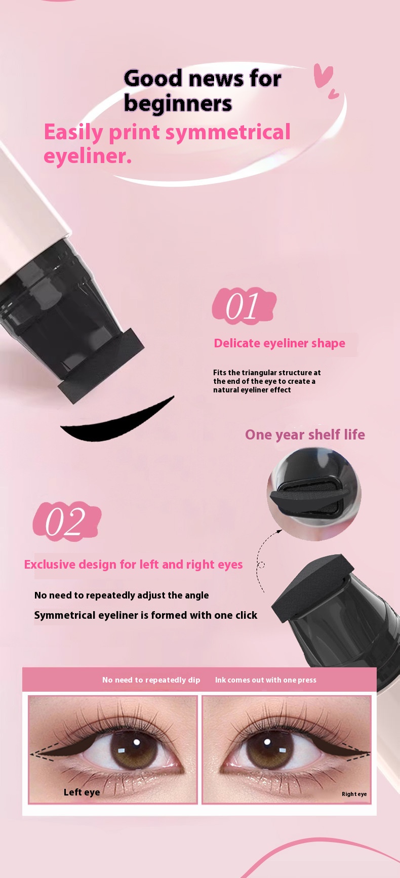 Waterproof Not Smudge Precise Outline Natural Long Lasting Integrated Double-headed Eyeliner Stamp Pen