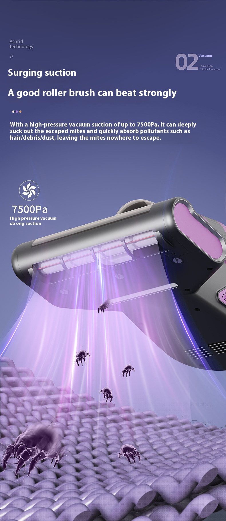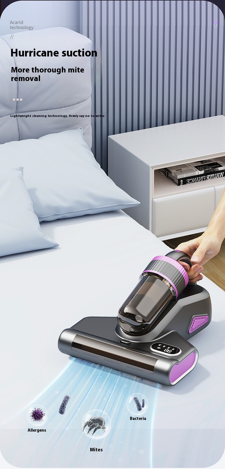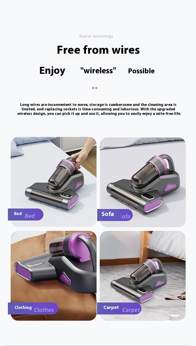 Wireless Mites Instrument Large Suction Rolling Brush Vacuum Cleaner UV Sterilization Mites Instrument