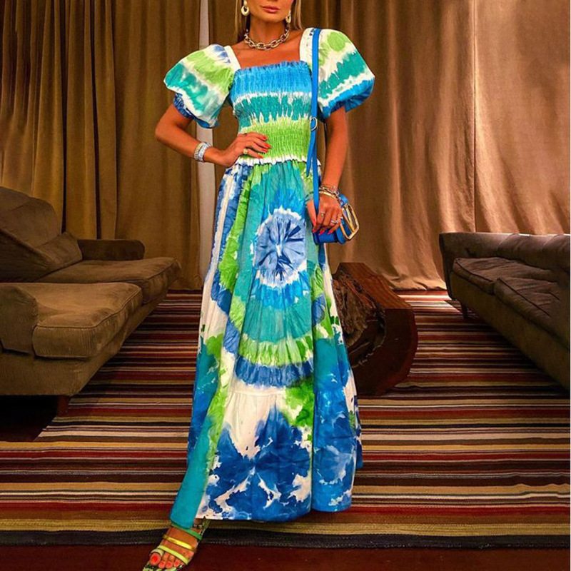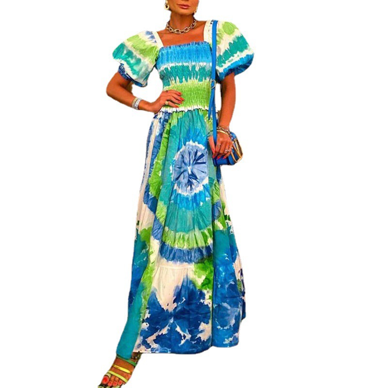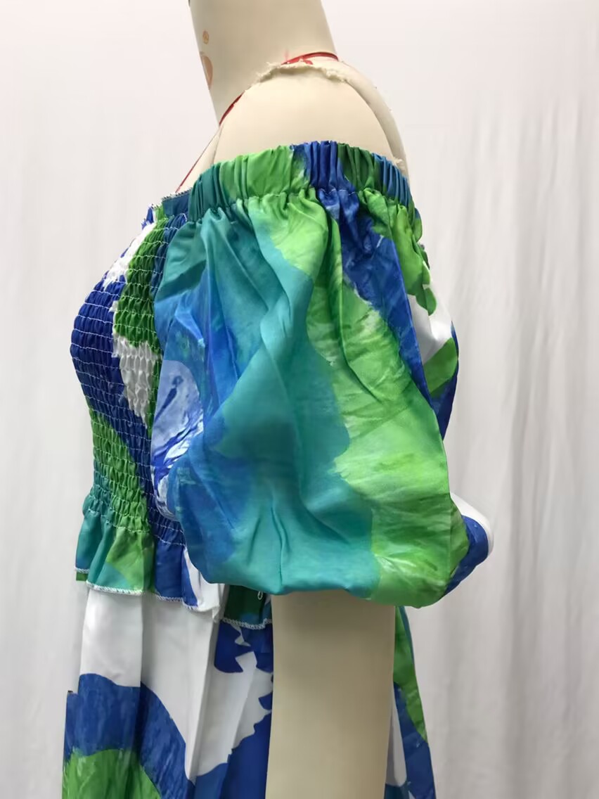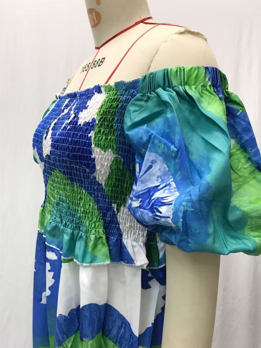 Women's Bubble Sleeve Printed Sexy Long Dress