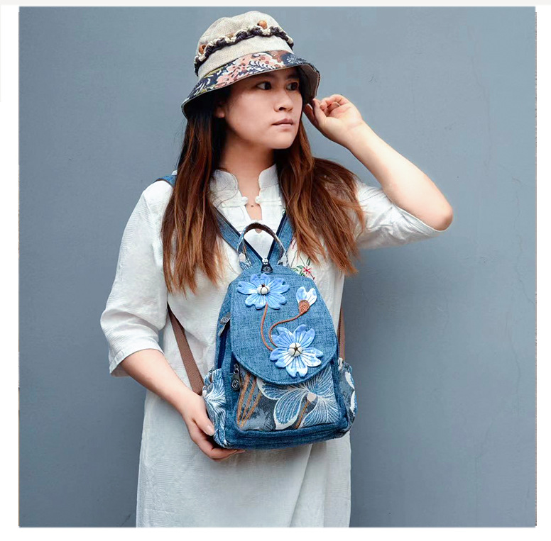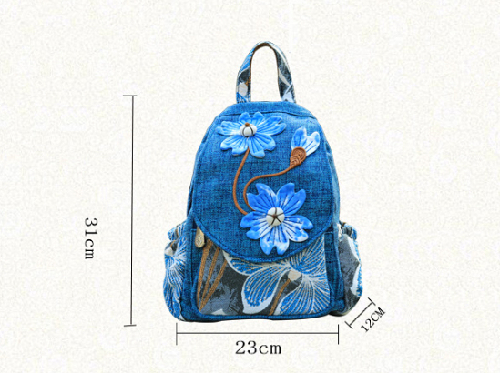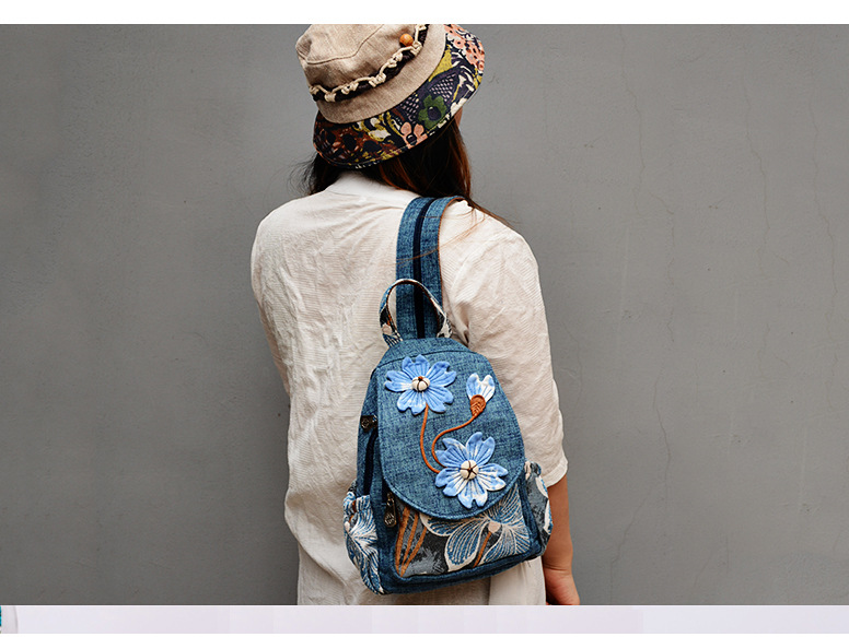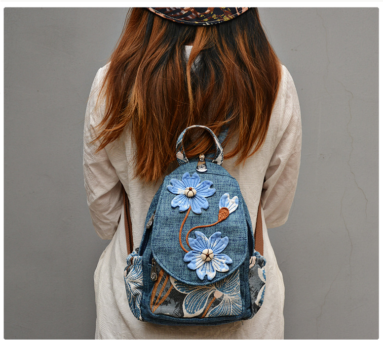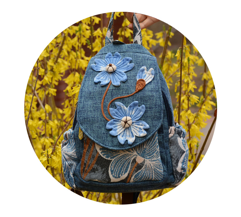 Women's Cotton Linen Canvas Ethnic Handicraft Tie-dyed Blue Art Backpack