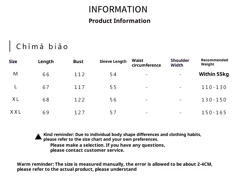 Size: M [within 50.00kg],L [50.00kg-57.50kg],XL [57.50kg-65.00kg],XXL [65.00kg-72.50kg]]
