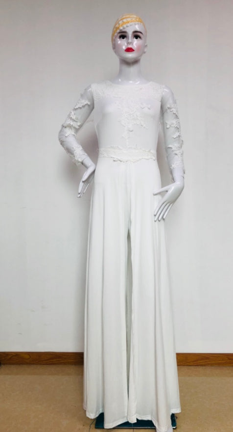 Women's Ebay Fashion See-through Long-sleeved Lace Jumpsuit Windbreaker Fake Two Pieces