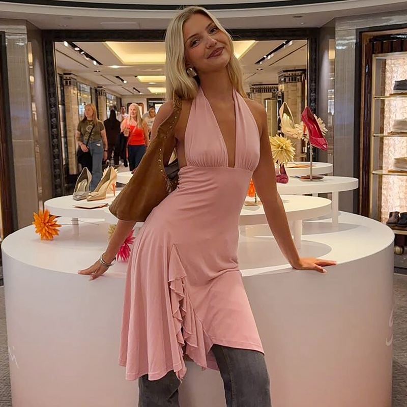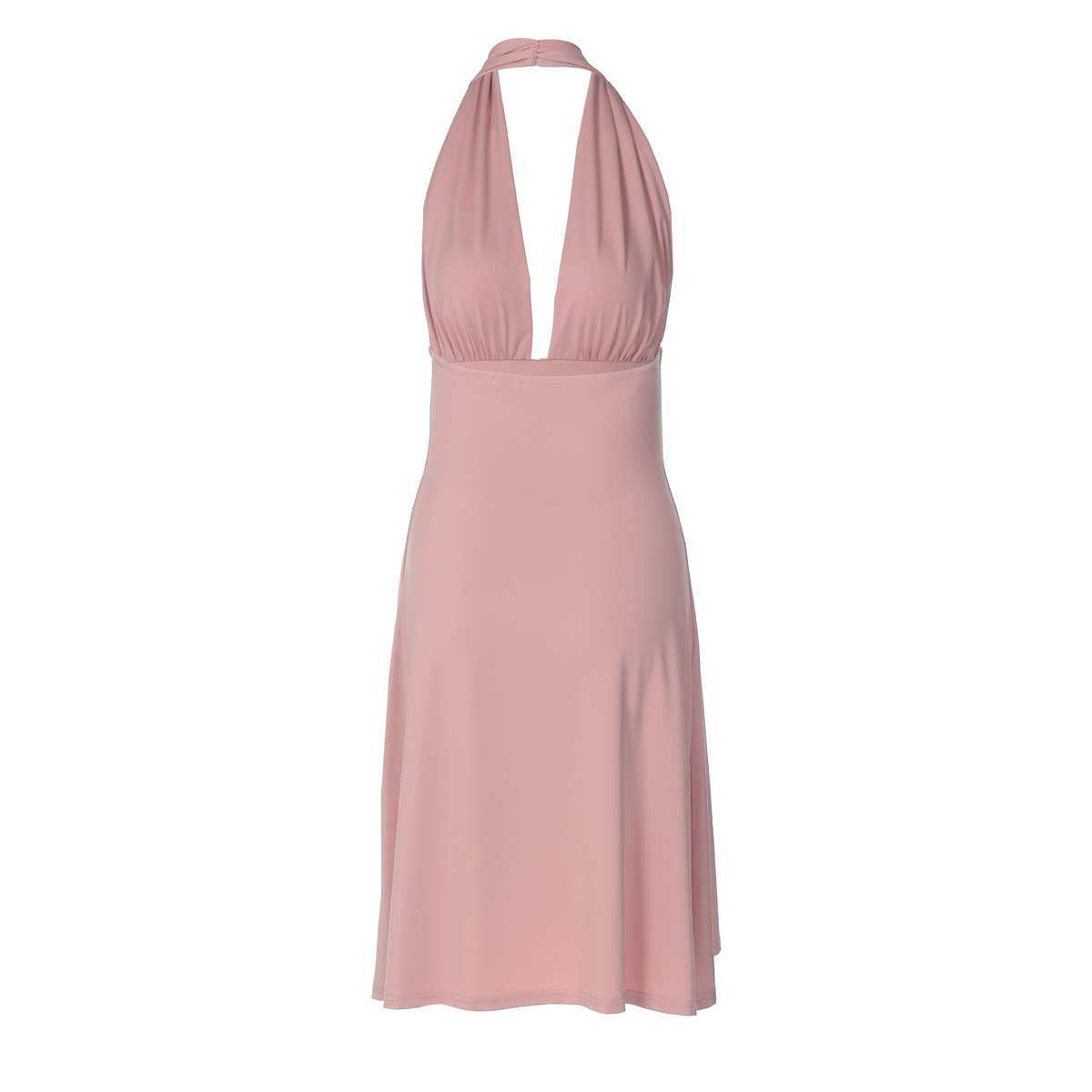 Women's Fashion Sexy Deep V Backless Waist Trimming Sheath Sleeveless Dress