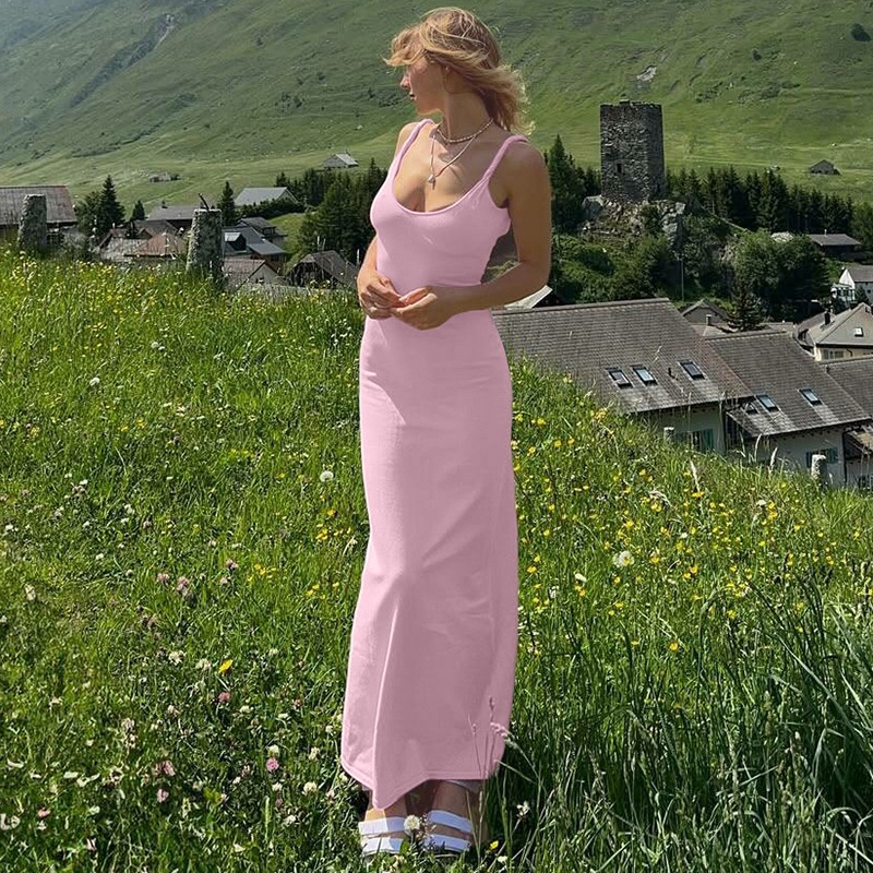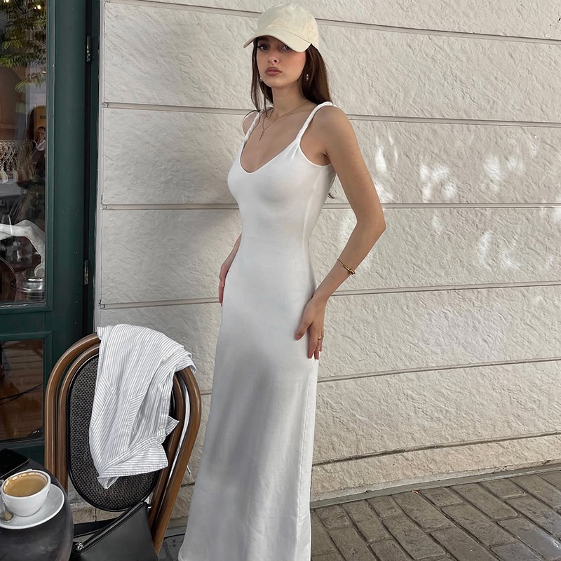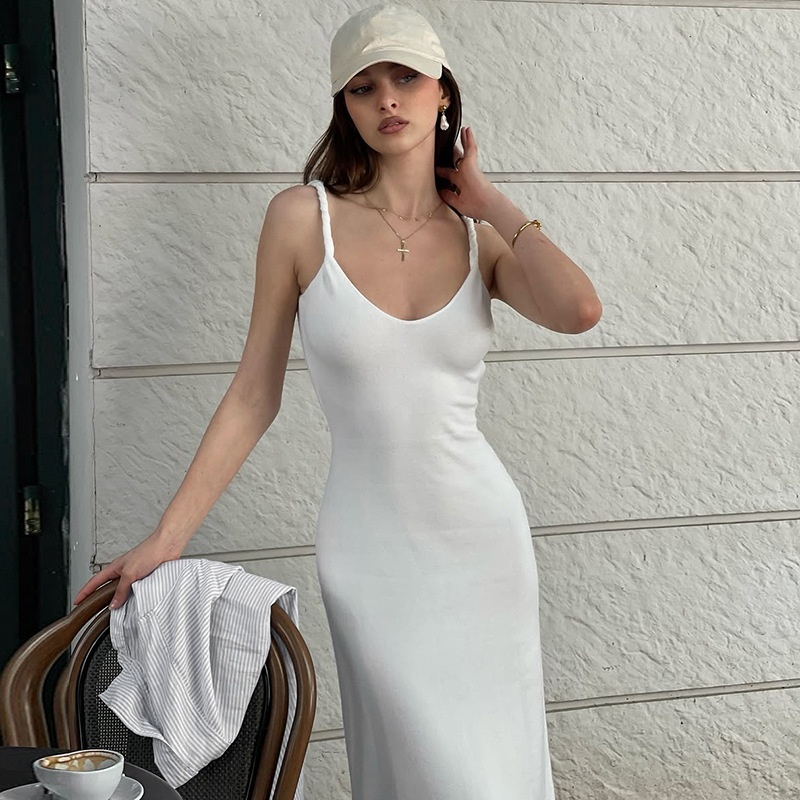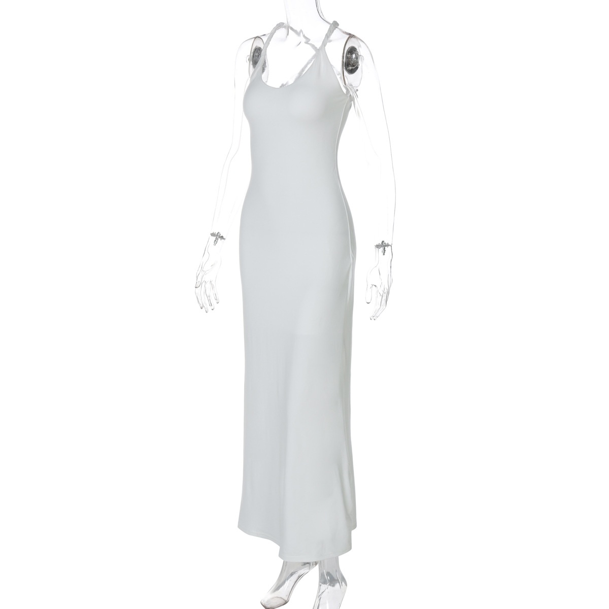 Women's Fashion Sexy Slimming Beam Waist Solid Color Shoulder Strap Twist Dress