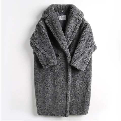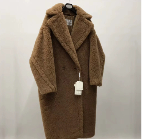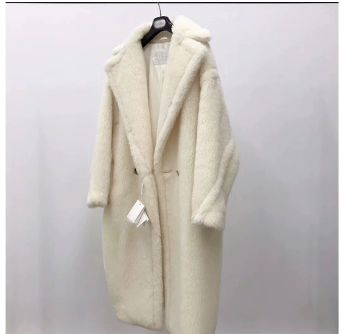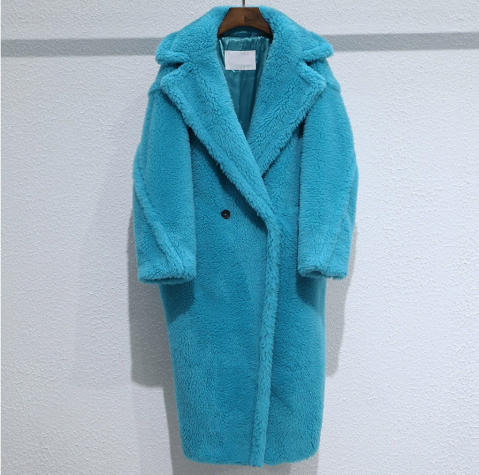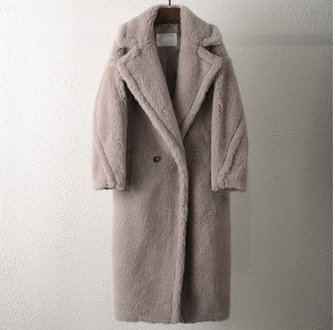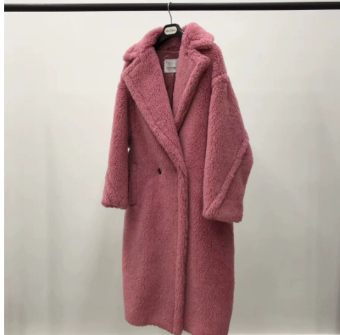 Women's Long Pink Wool Alpaca Fleecefiber Fur Coat