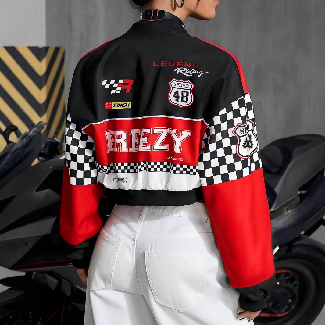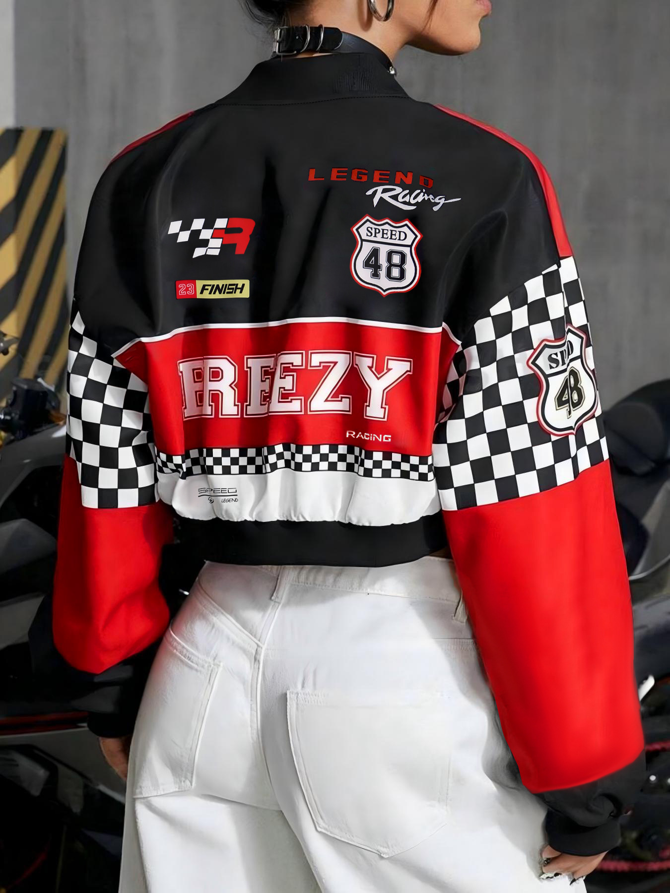 Women's Loose Fashion Short Letters Casual Zipper Jacket Coat