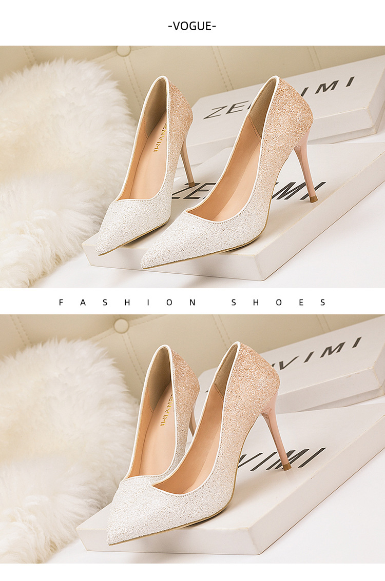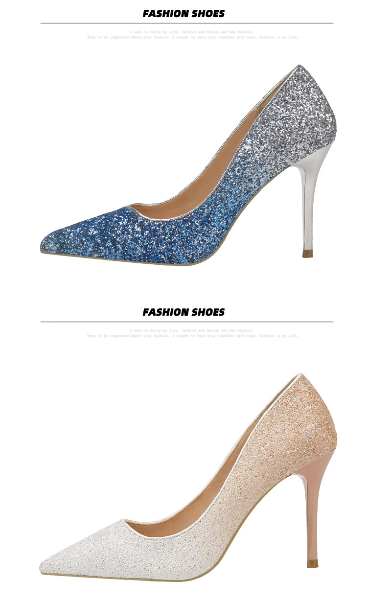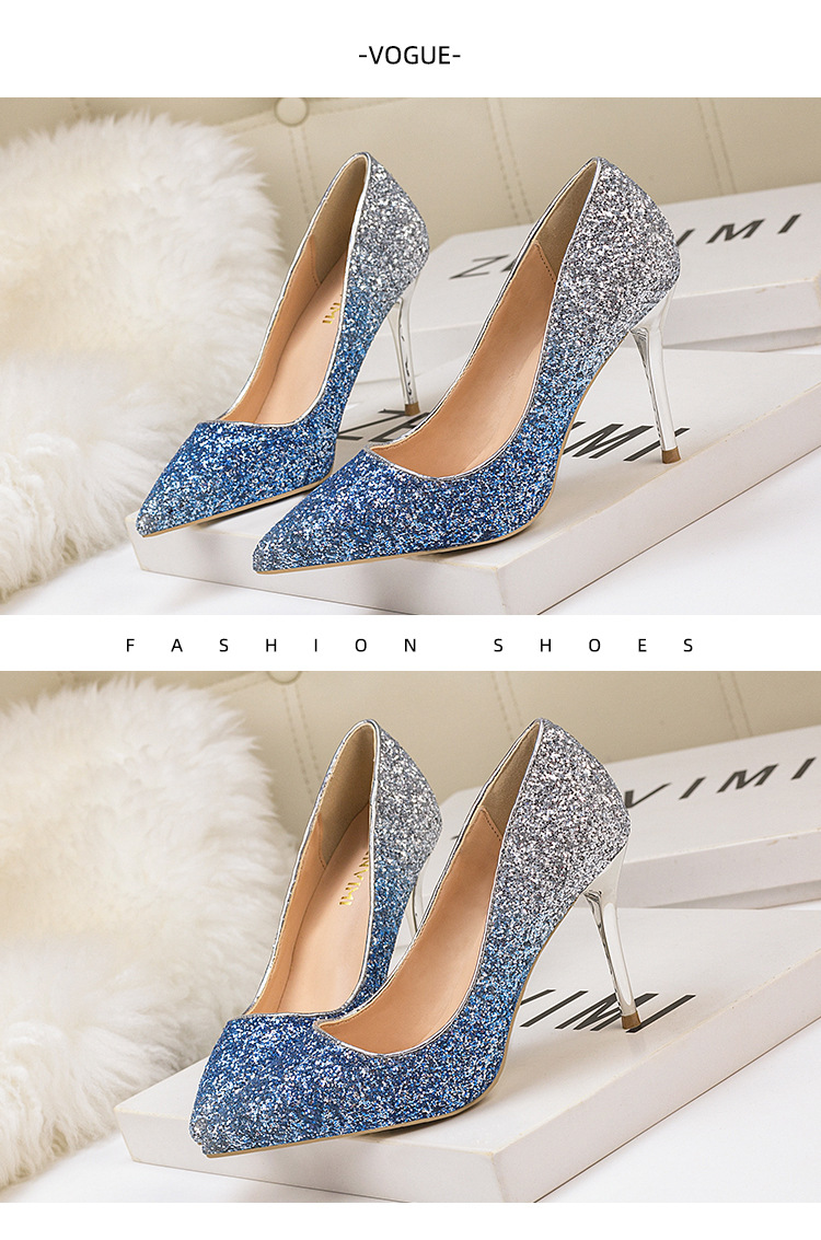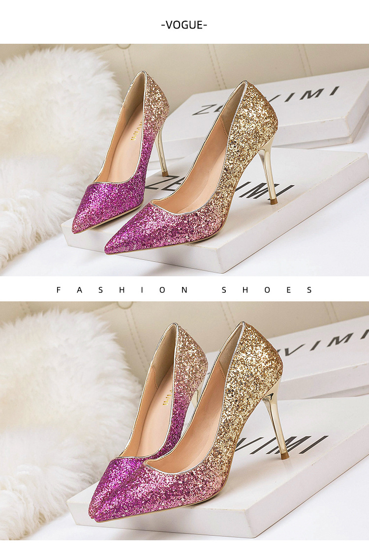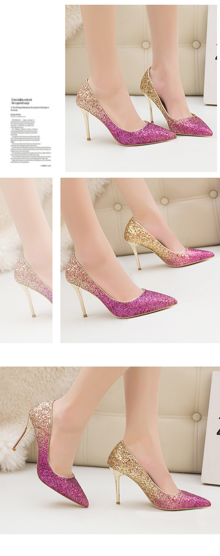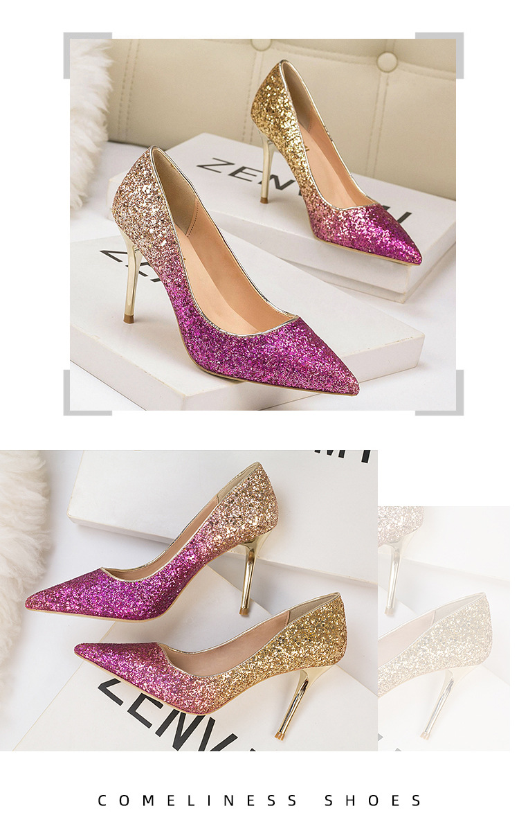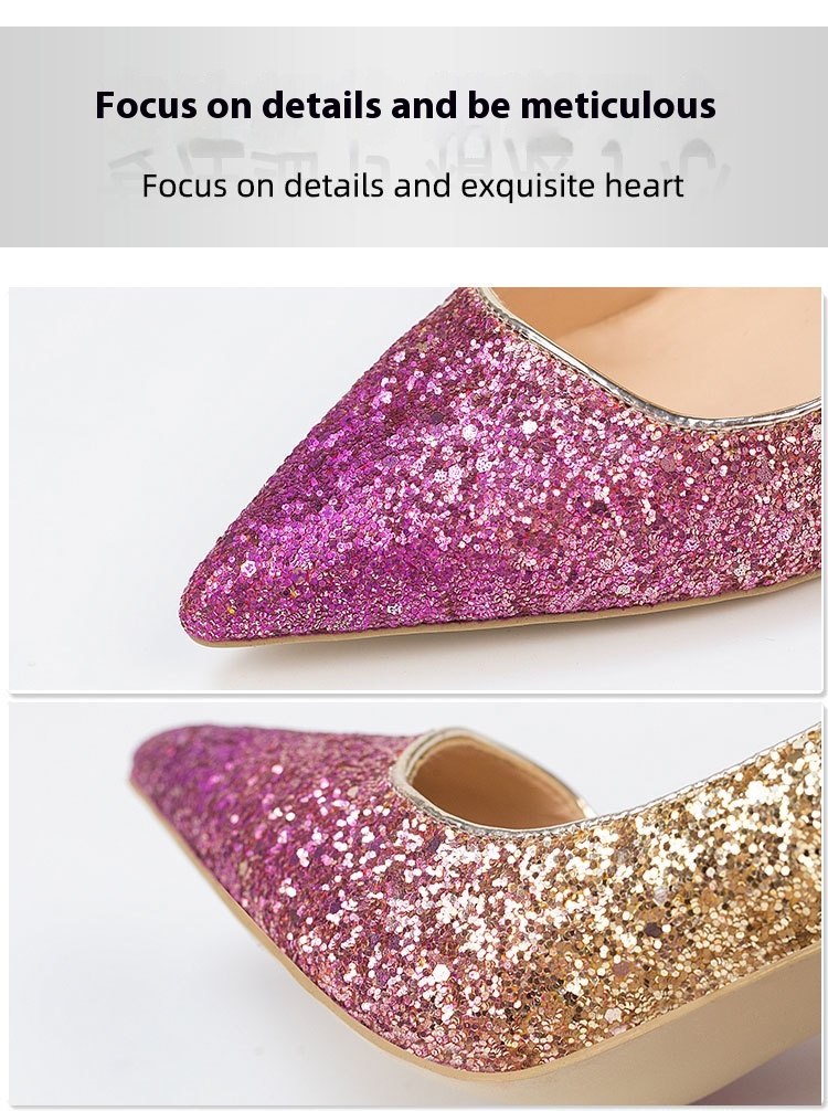 Women's Low-cut Pointed Toe Gradient Sequin High Heels