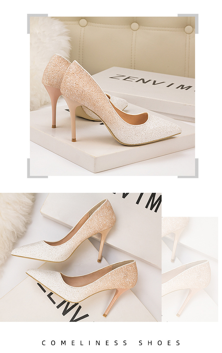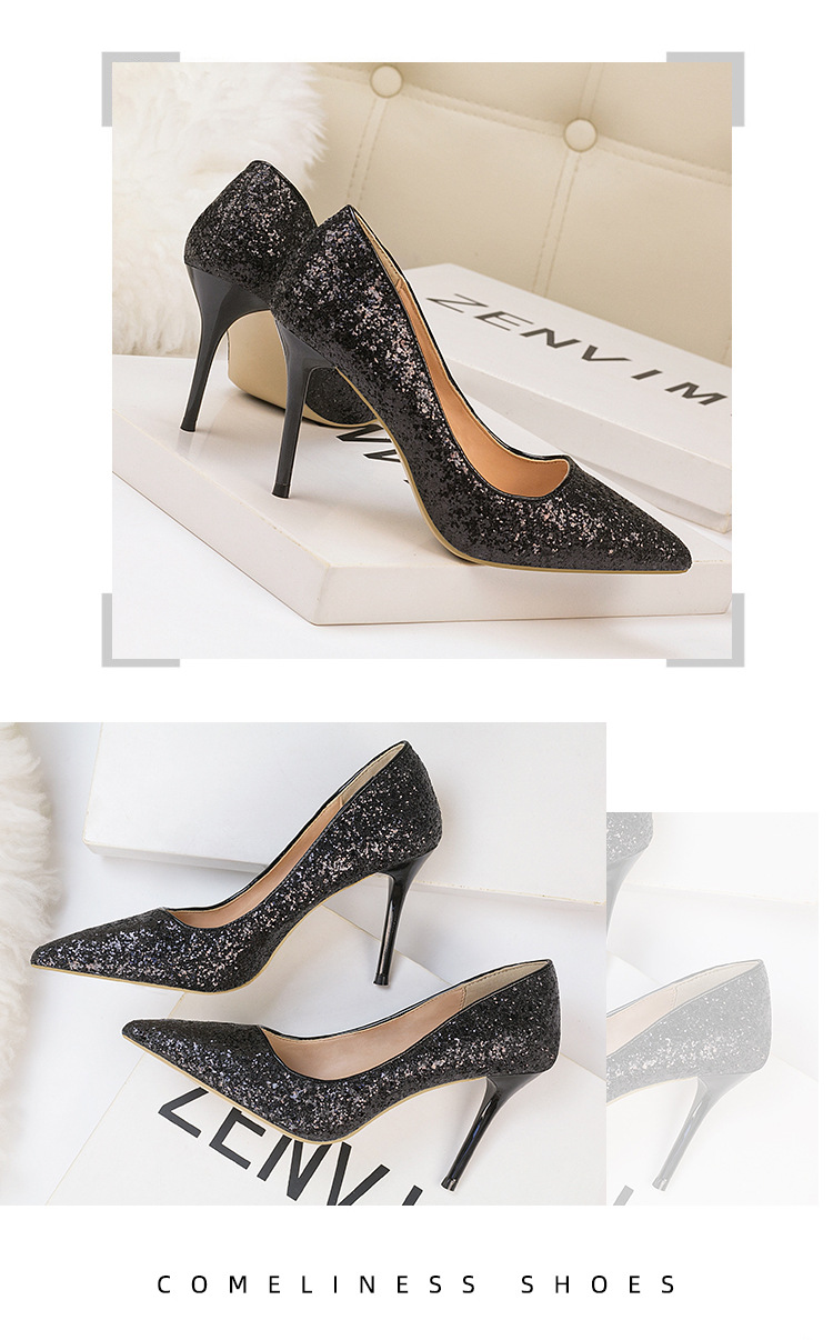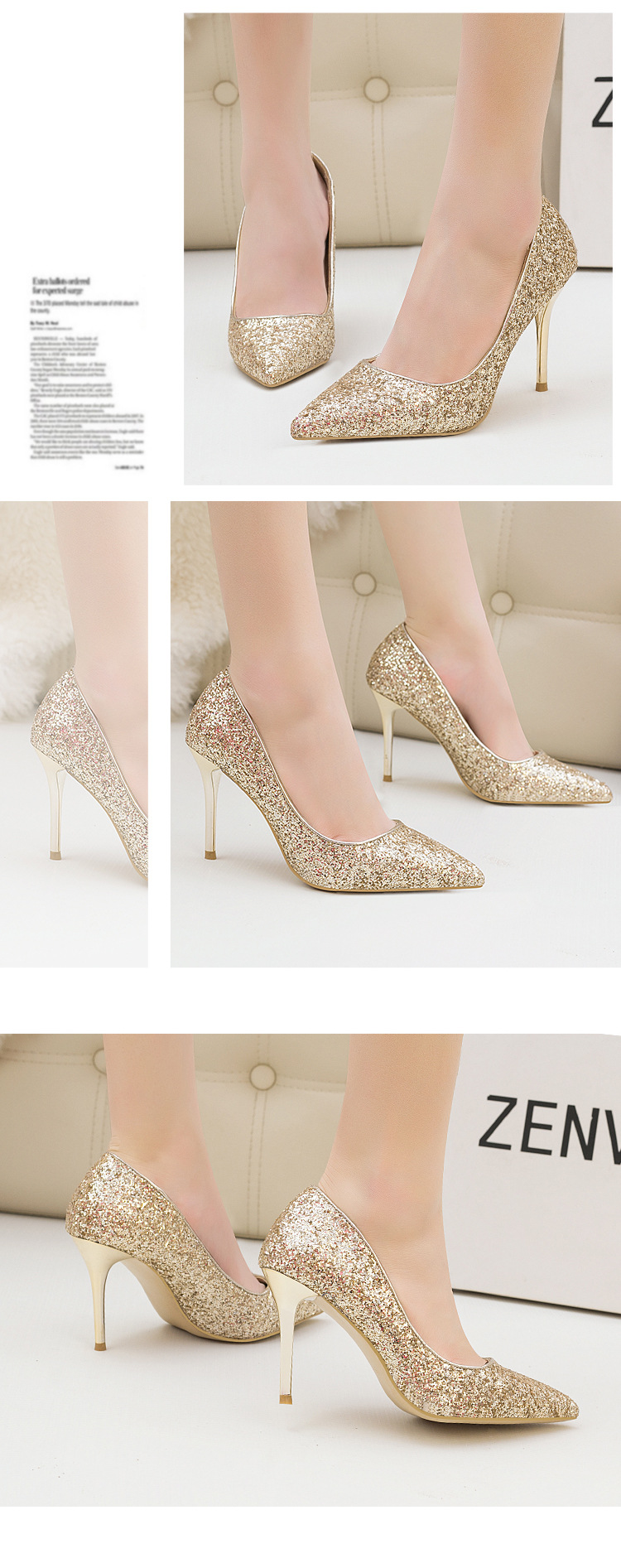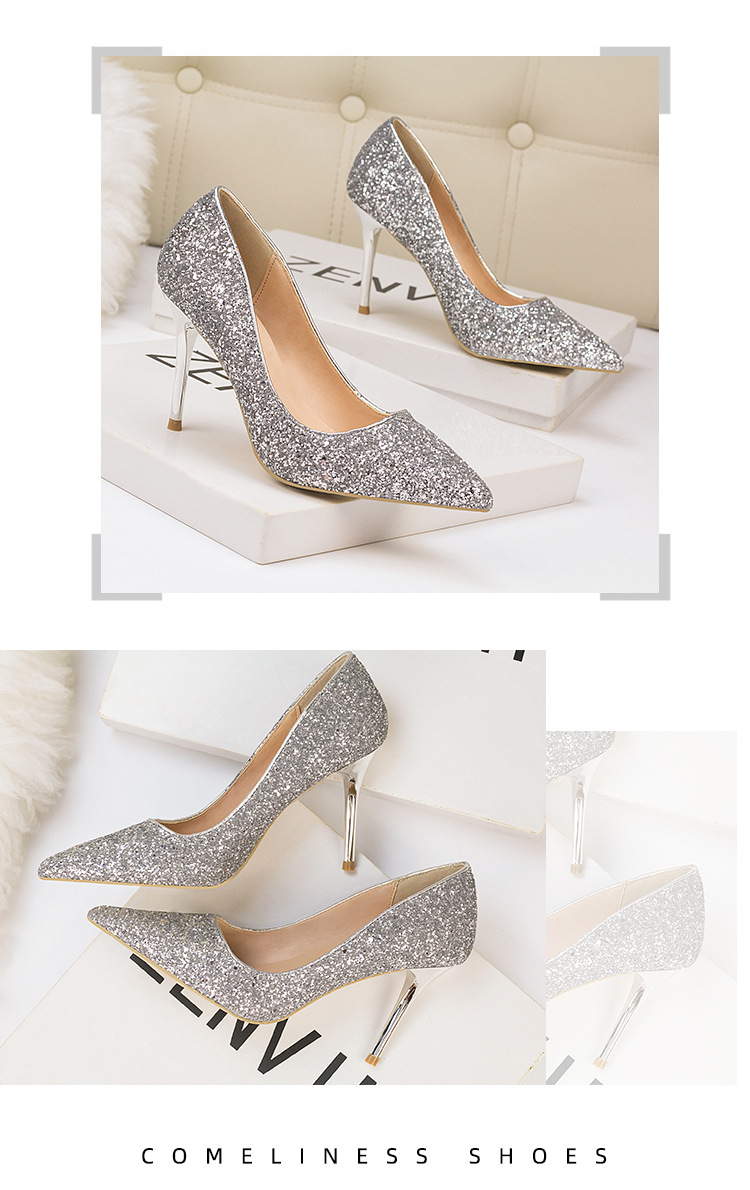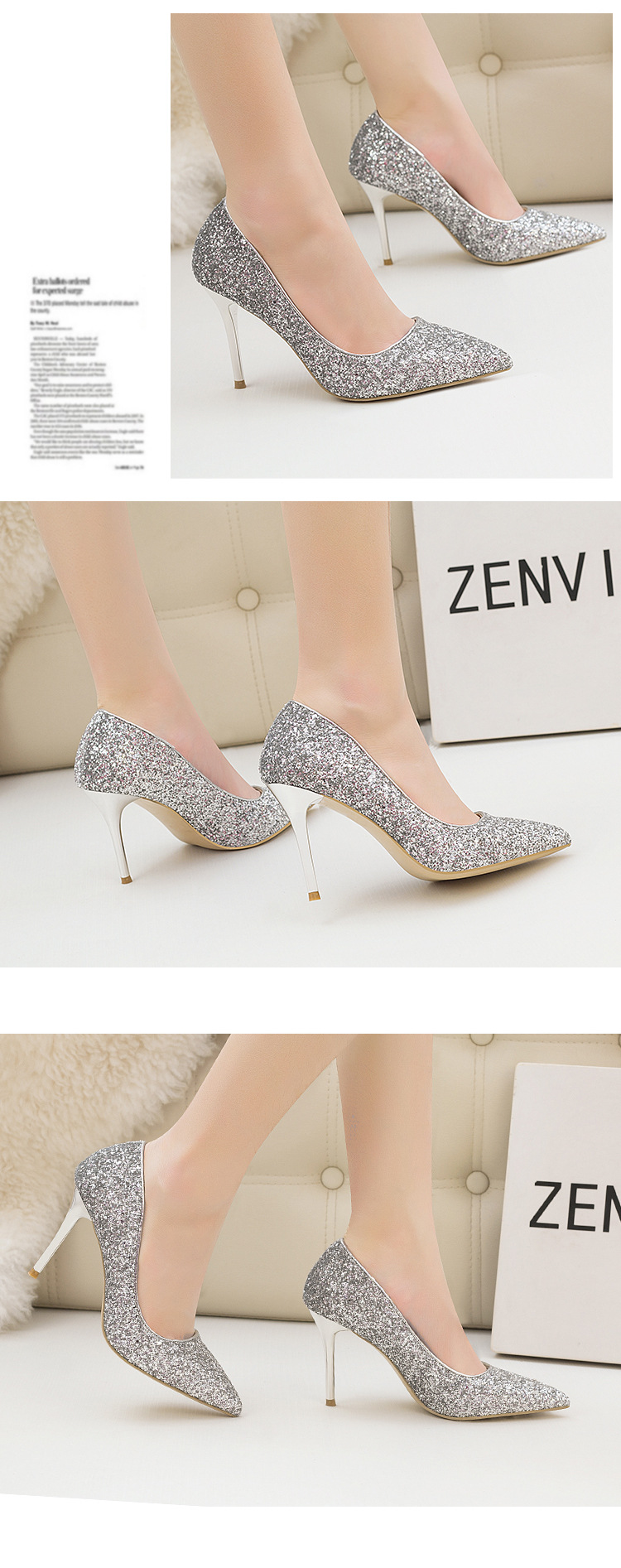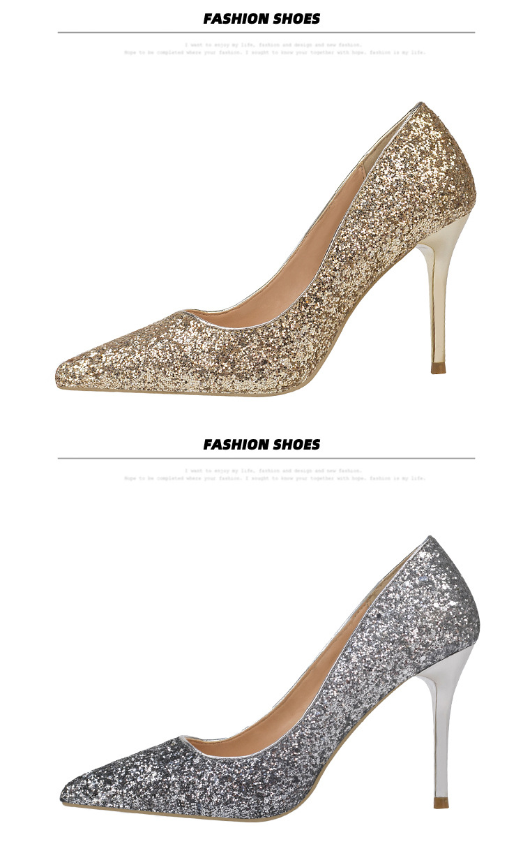 Women's Low-cut Pointed Toe Gradient Sequin High Heels