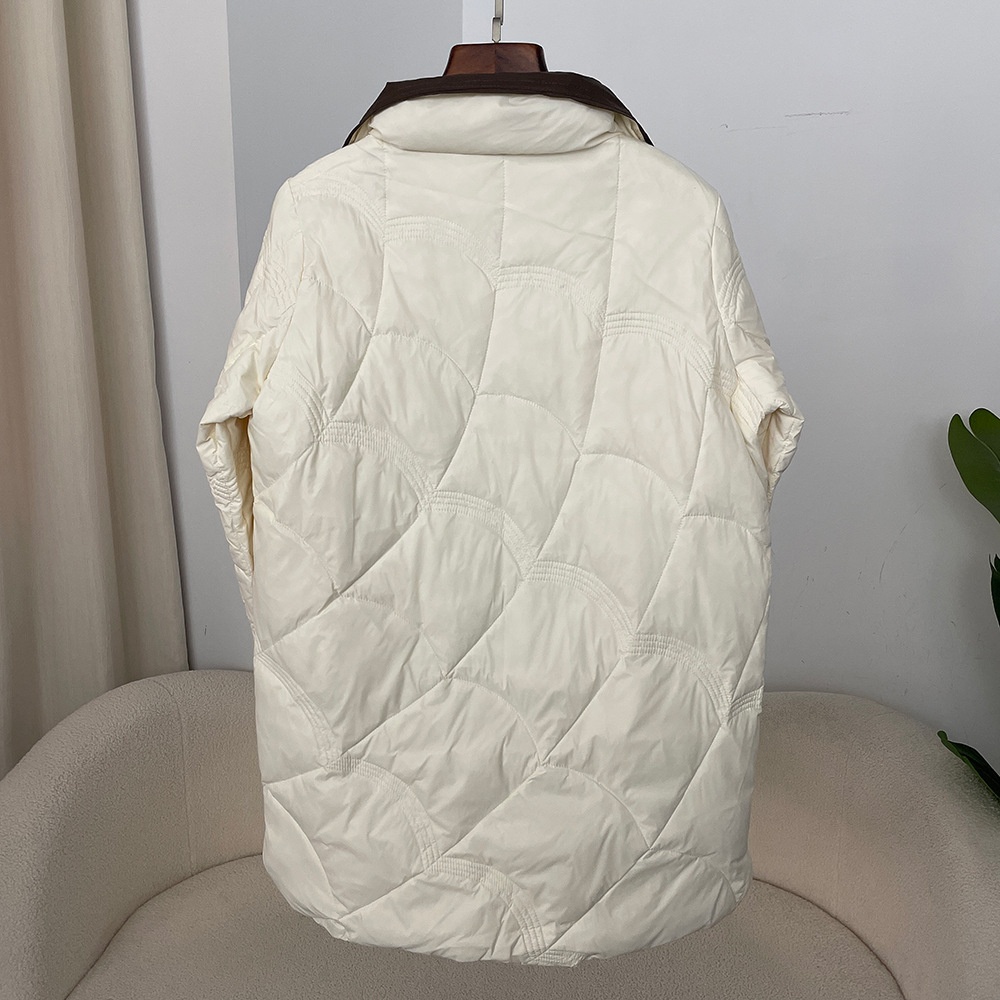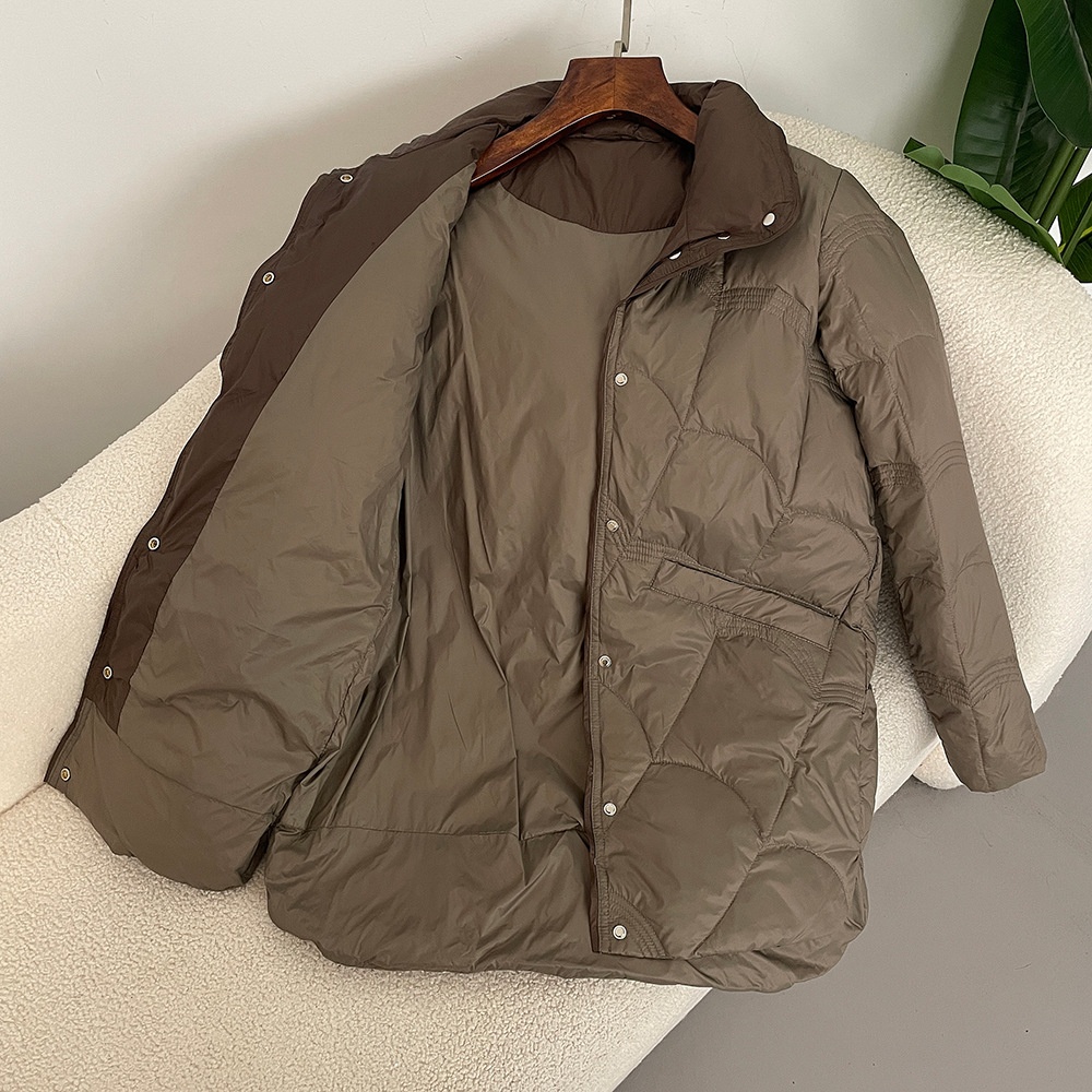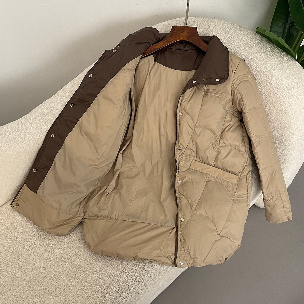 Women's Mid-length White Duck Down Retro Loose Xiangyun Stand Collar Coat