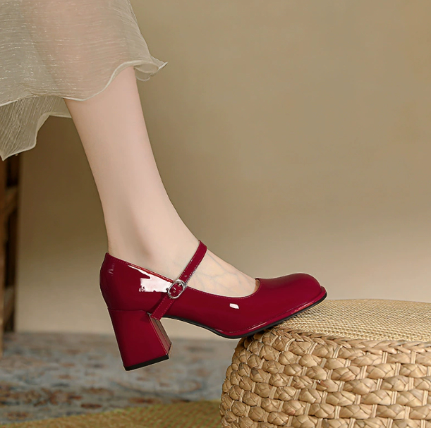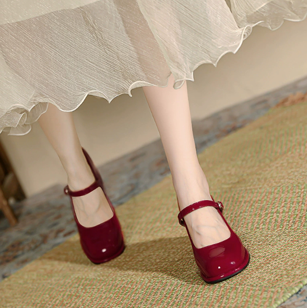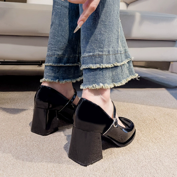 Women's One-strap Thick Heel Round Toe Large Size High Heels