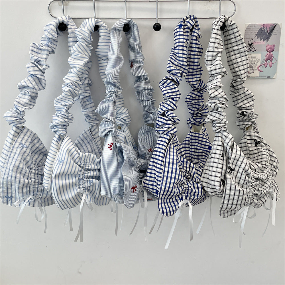 Color: blue plaid blue bow, blue striped blue bow, blue striped red bow, black plaid black bow, blue plaid dark blue pattern