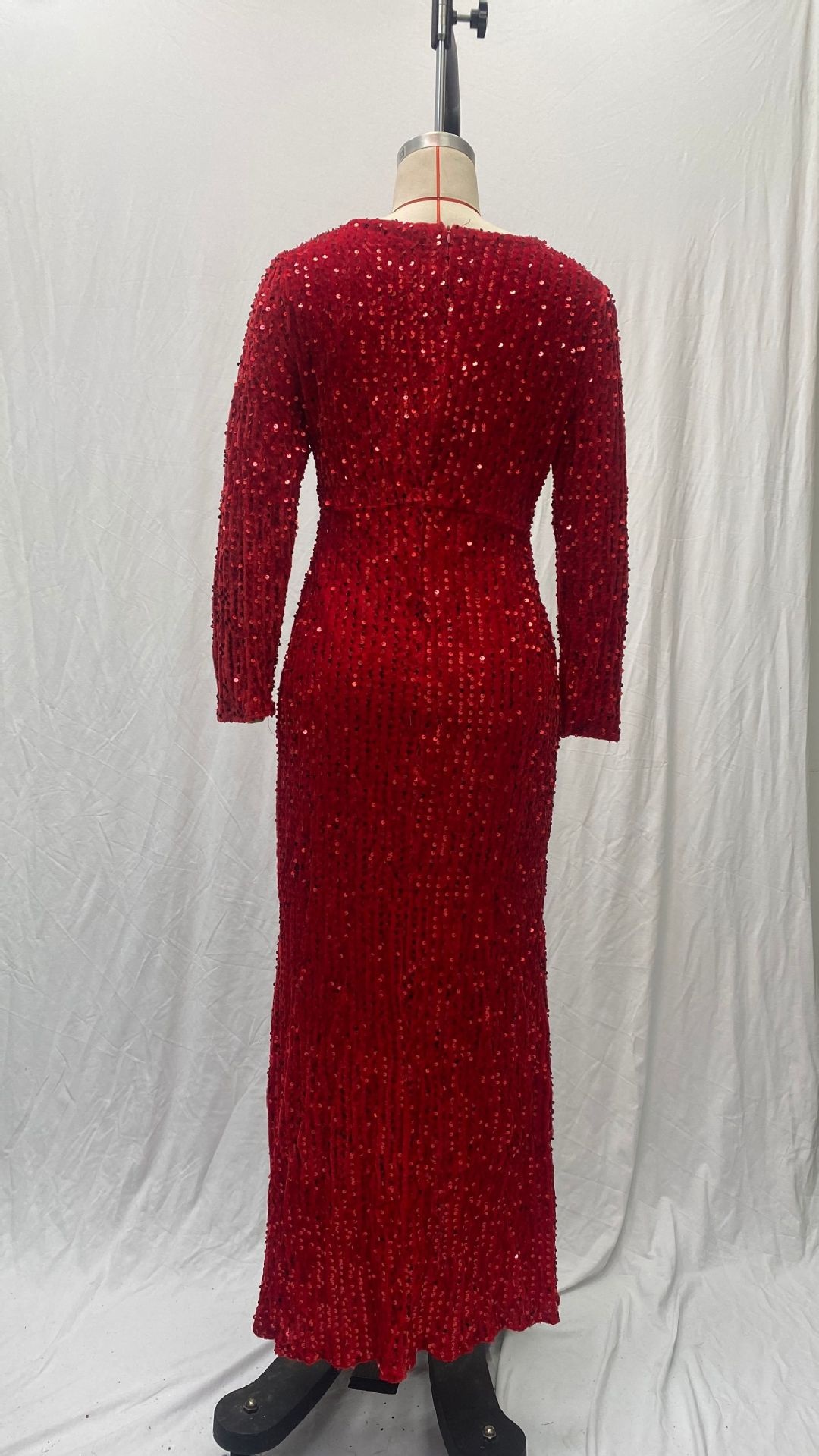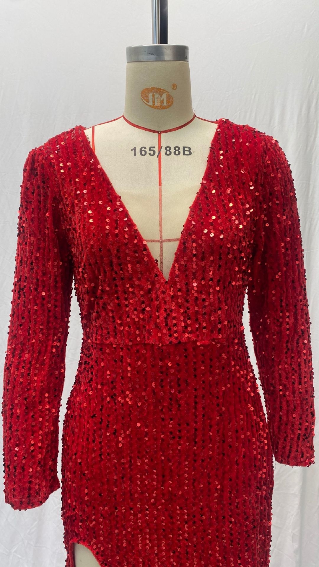 Women's Sexy Deep V Long Sleeve Slim-fit Sequined Dress