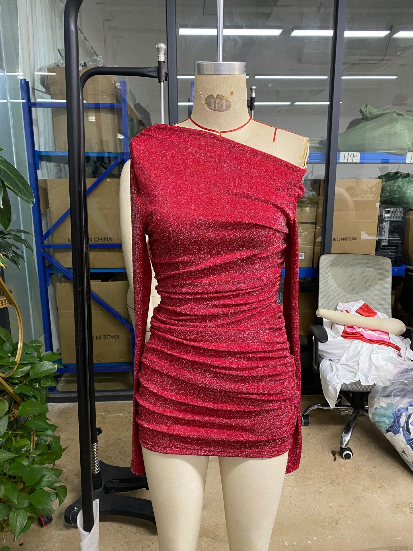 Women's Sexy Oblique Shoulder Party Solid Color Dress
