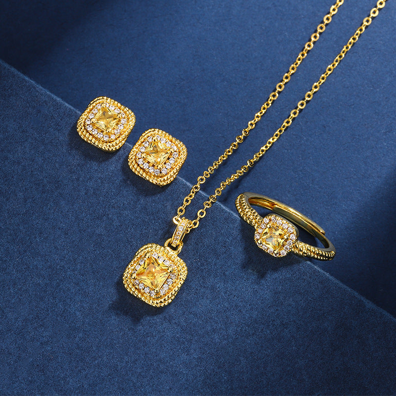 Color: small sugar cube ring, small sugar cube candy earrings, small sugar cube pendant necklace, small sugar cube three-piece set [with necklace]]