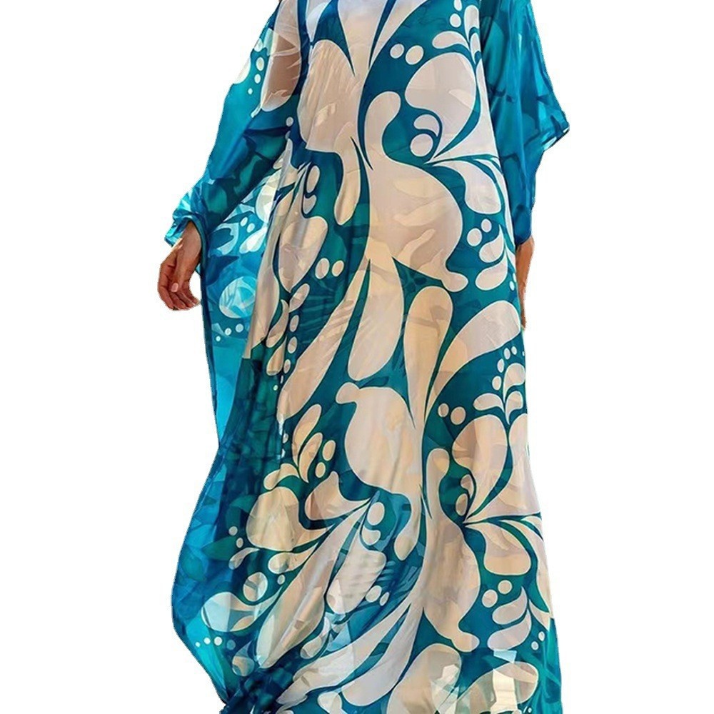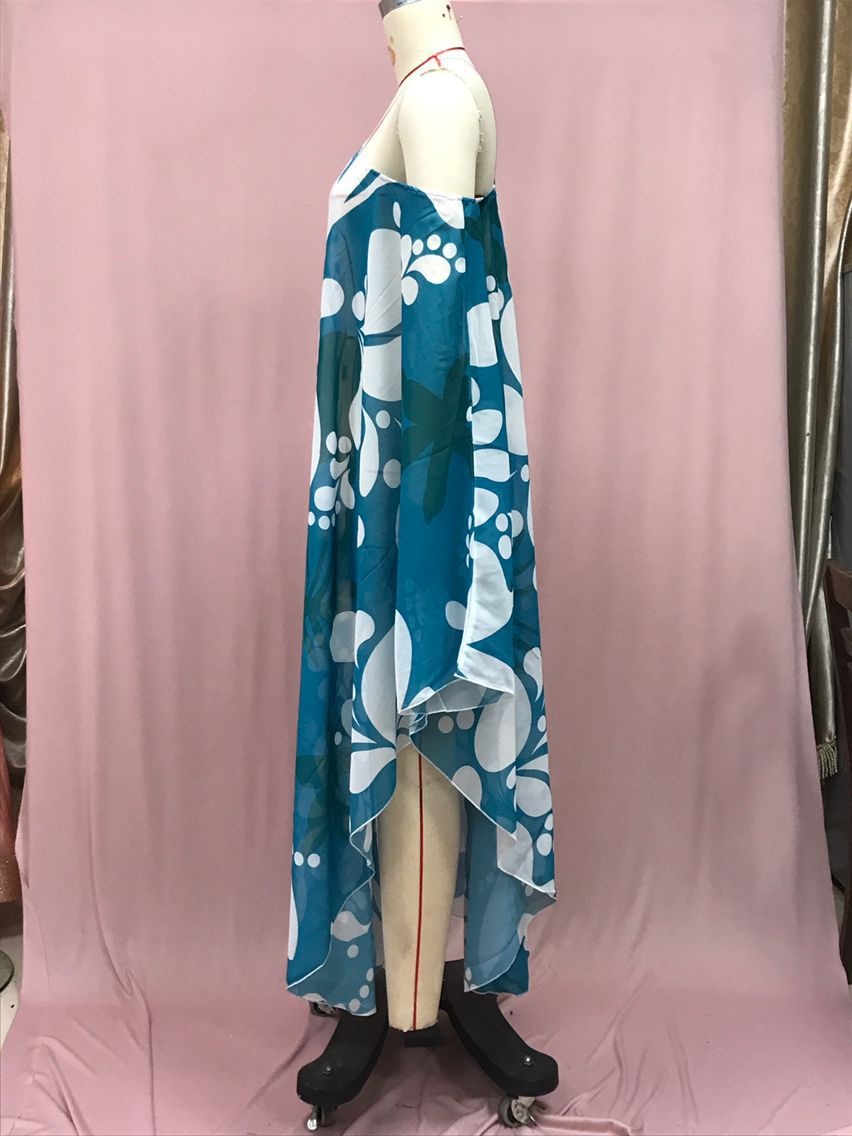 Women's Sloping Shoulder Dress Bohemian Print Loose Off-the-shoulder