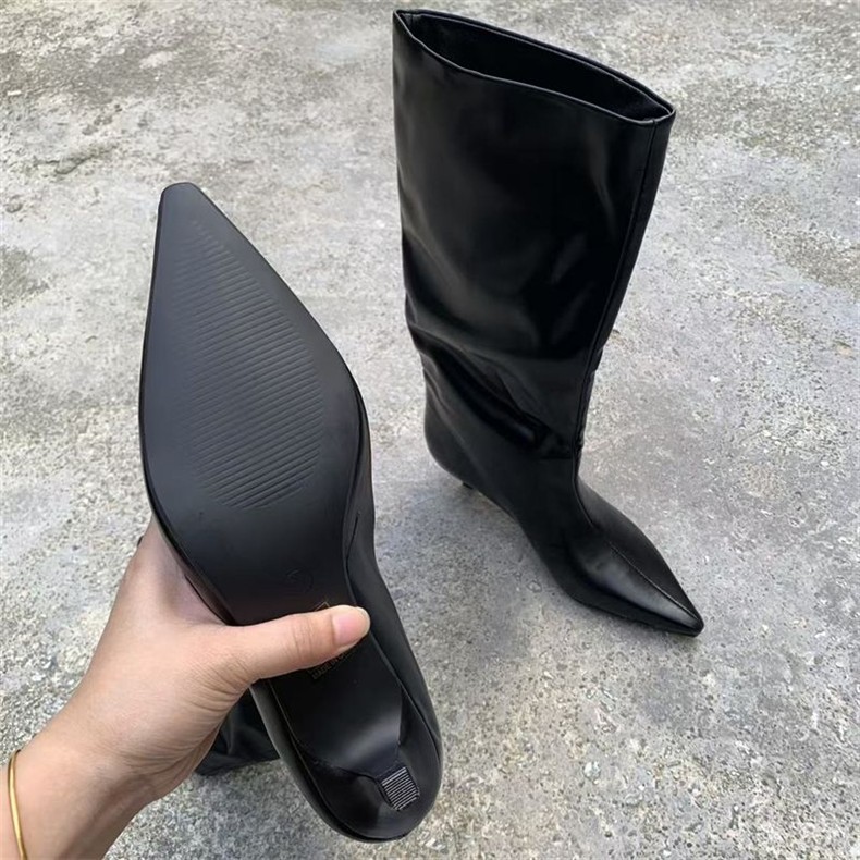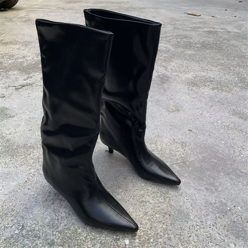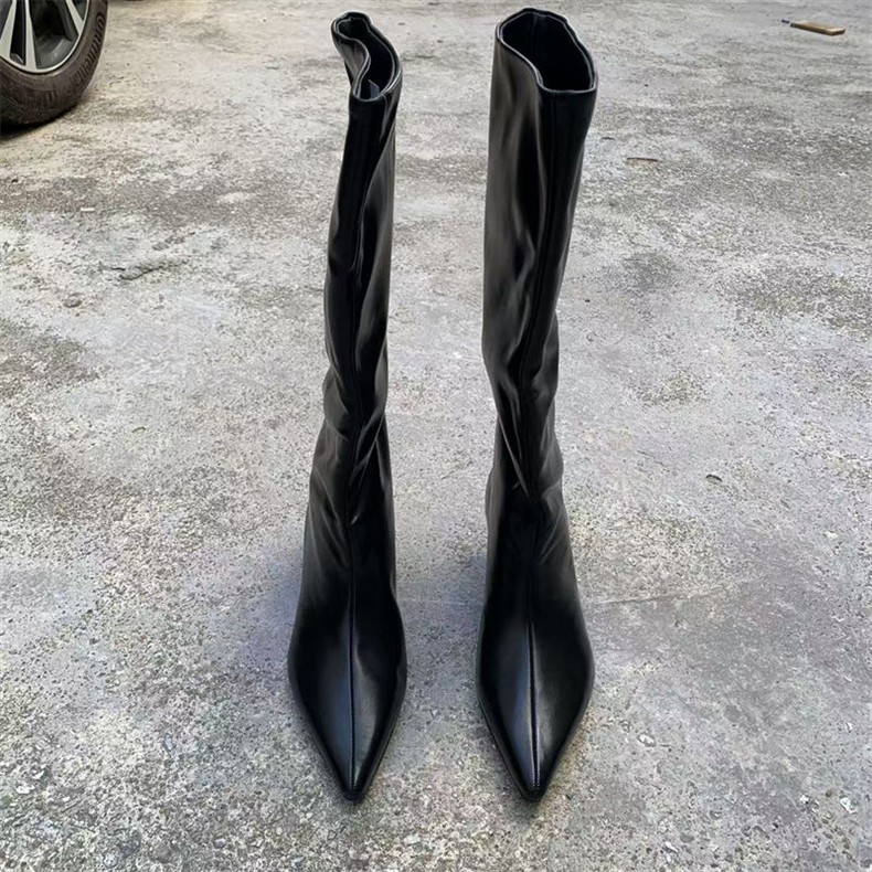 Women's Solid Color Fashion All-match Outer Wear High Tube Pointed Boots