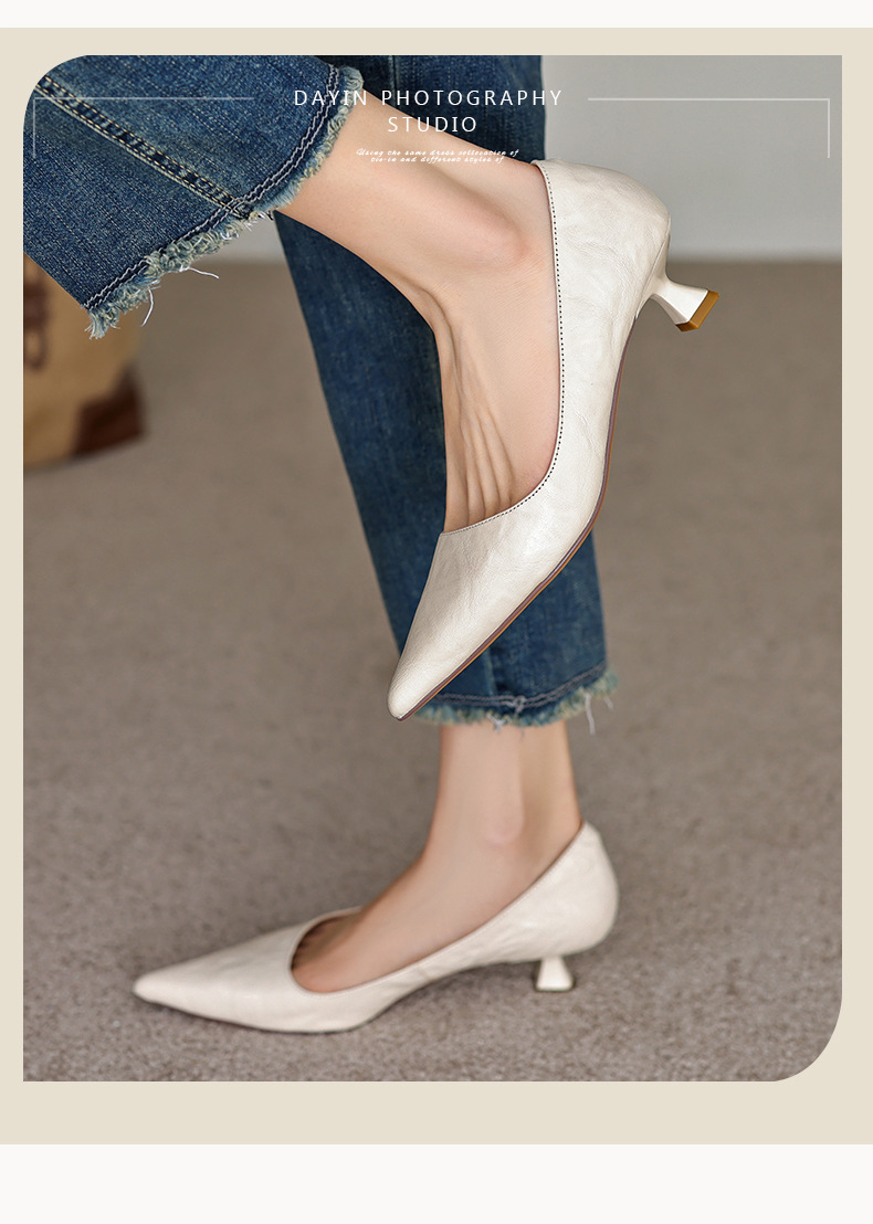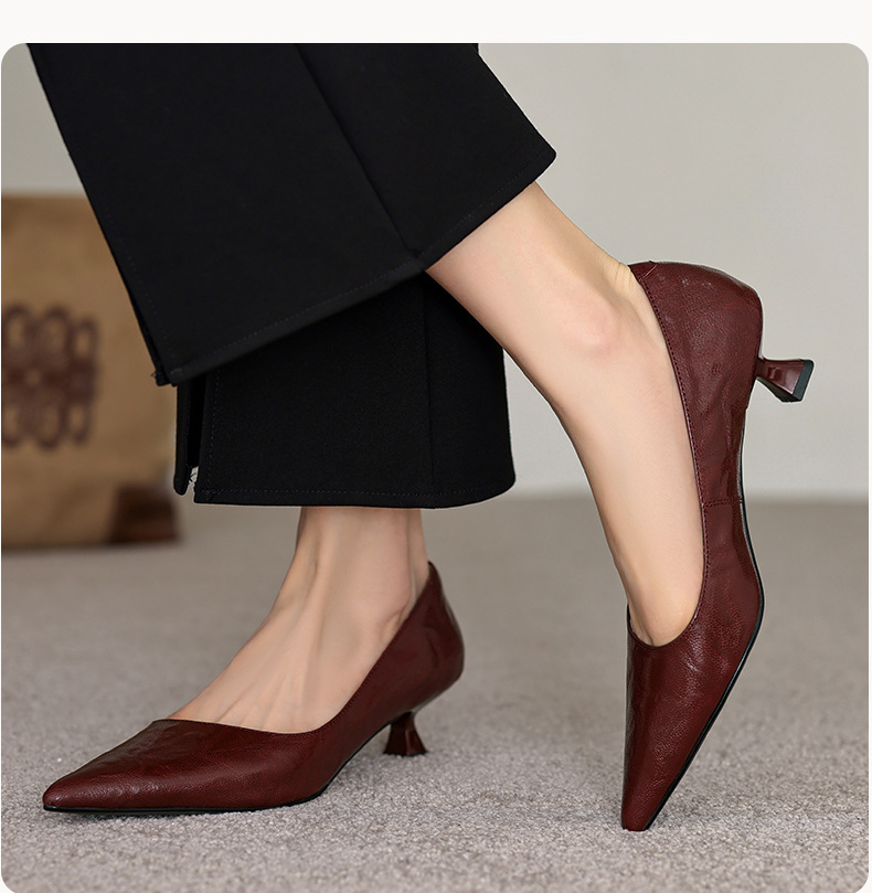 Women's Solid Color French Pointed-toe Mid Heel Shoes