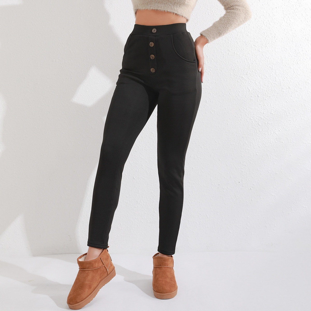 Women's Thick Leggings High Waist Button Casual
