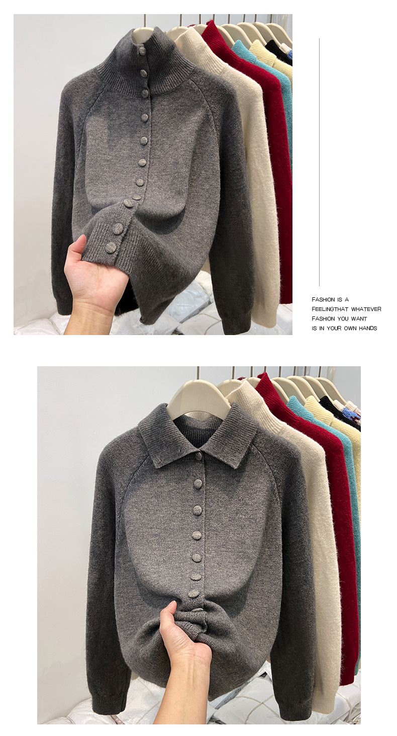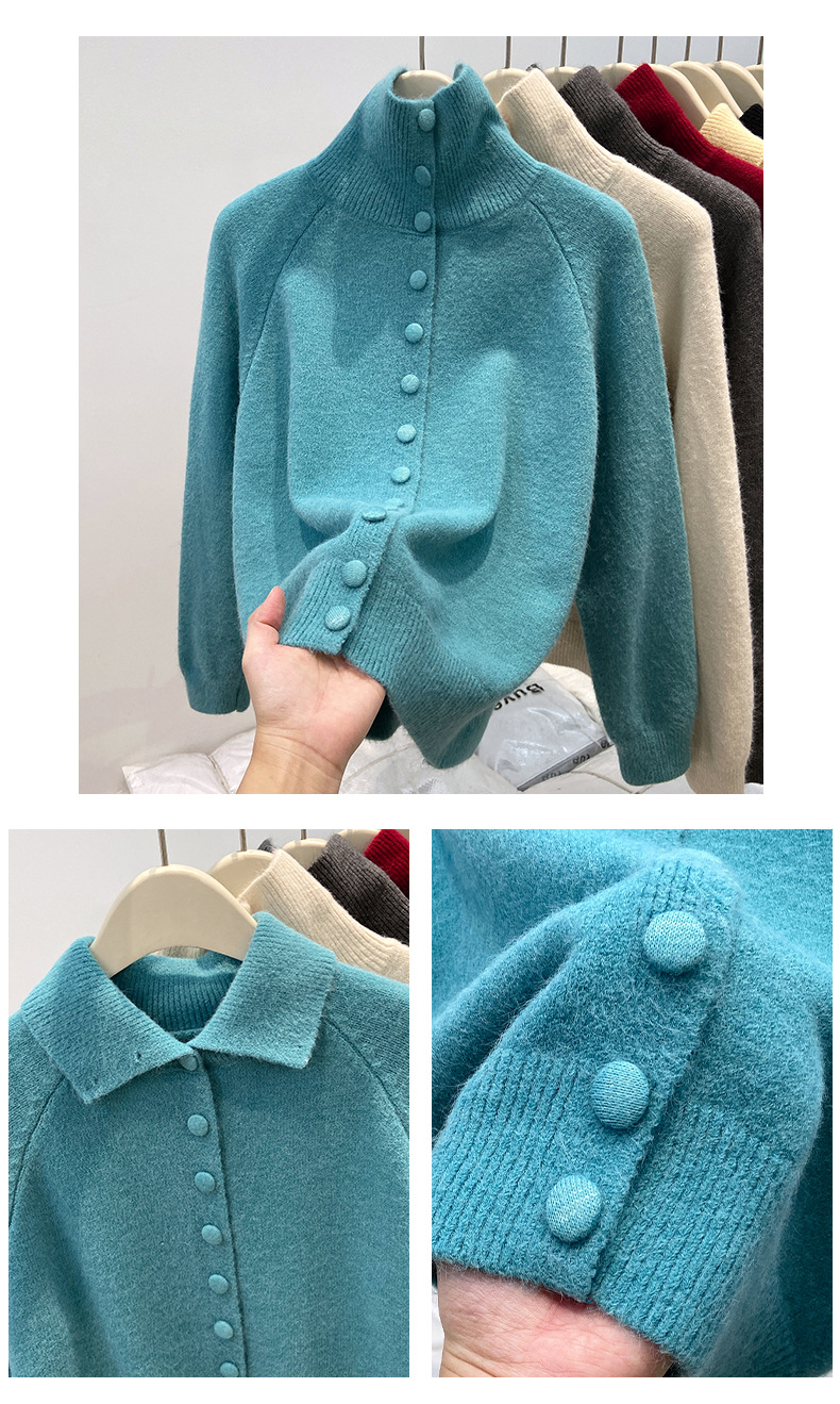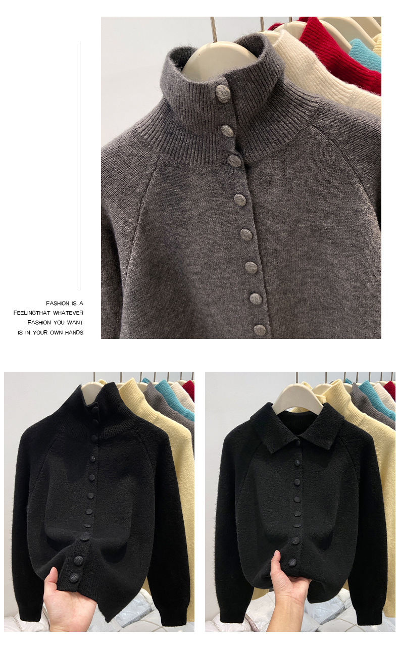 Women's Turtleneck Single-breasted Cardigan Loose And Lazy Style Knitted Sweater