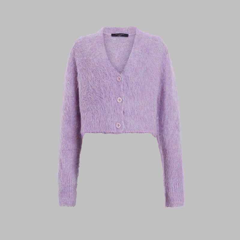 Women's V-neck Single Breasted Mink Solid Color Short Commuter Sweater
