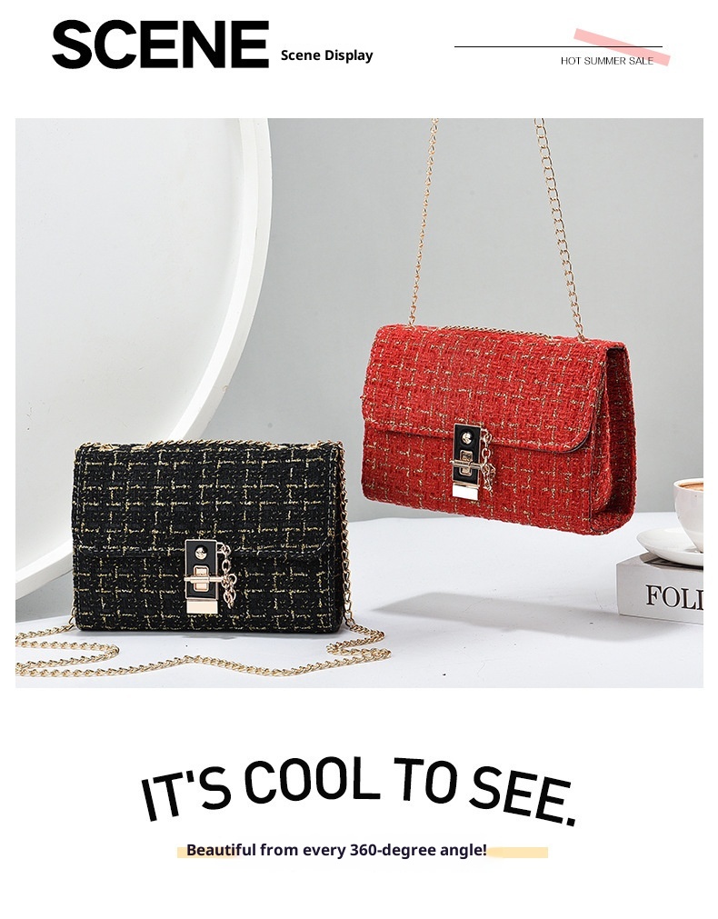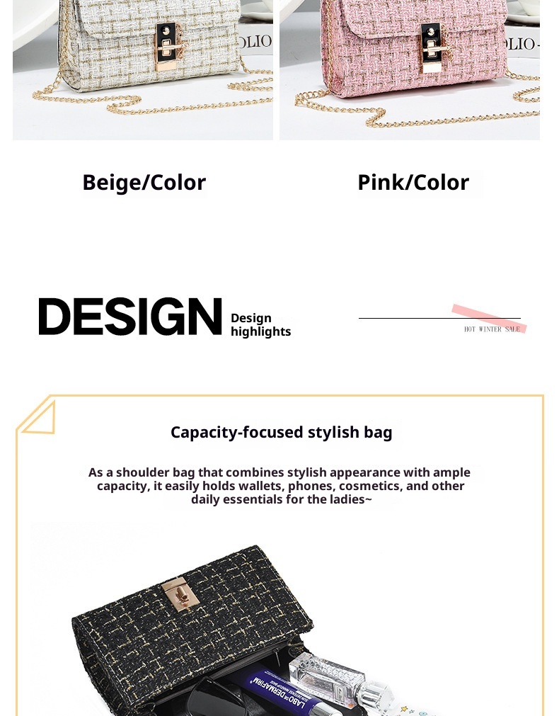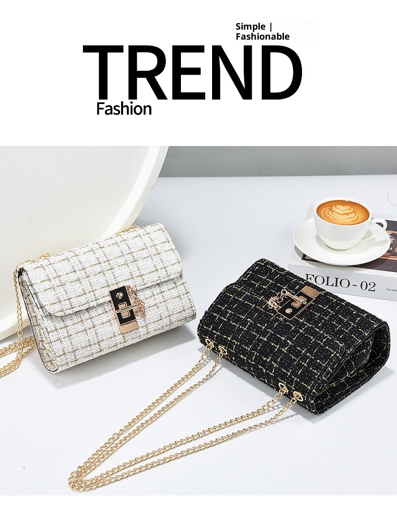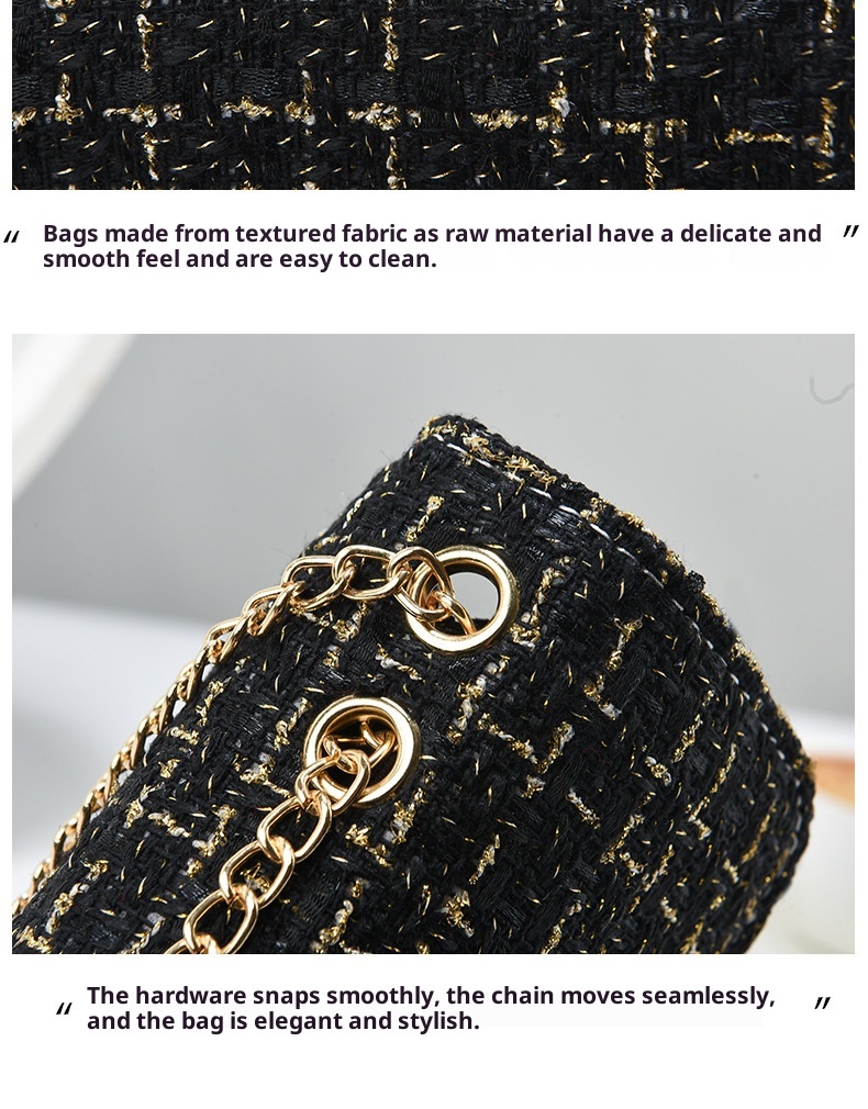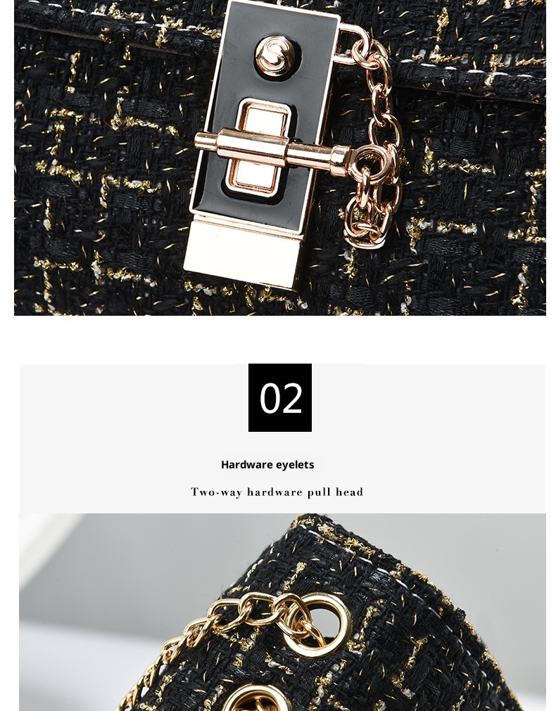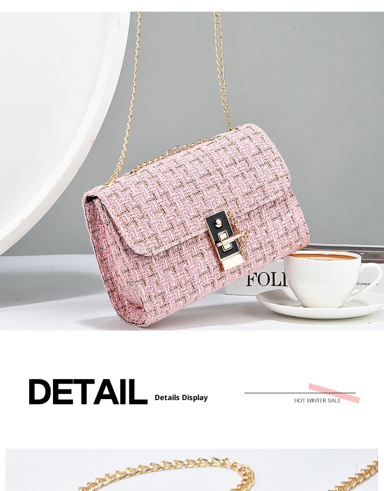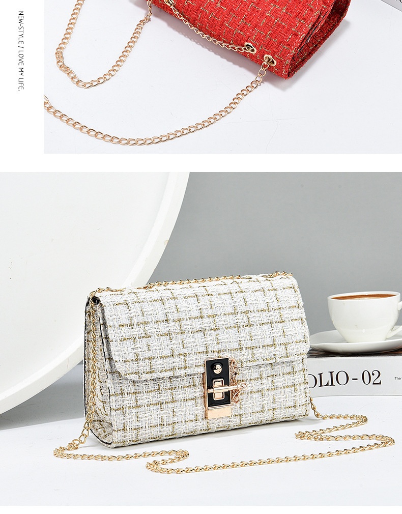 Woolen Twist Lock Shoulder Bag Versatile Women's Bag Gold Silk Contrast Color