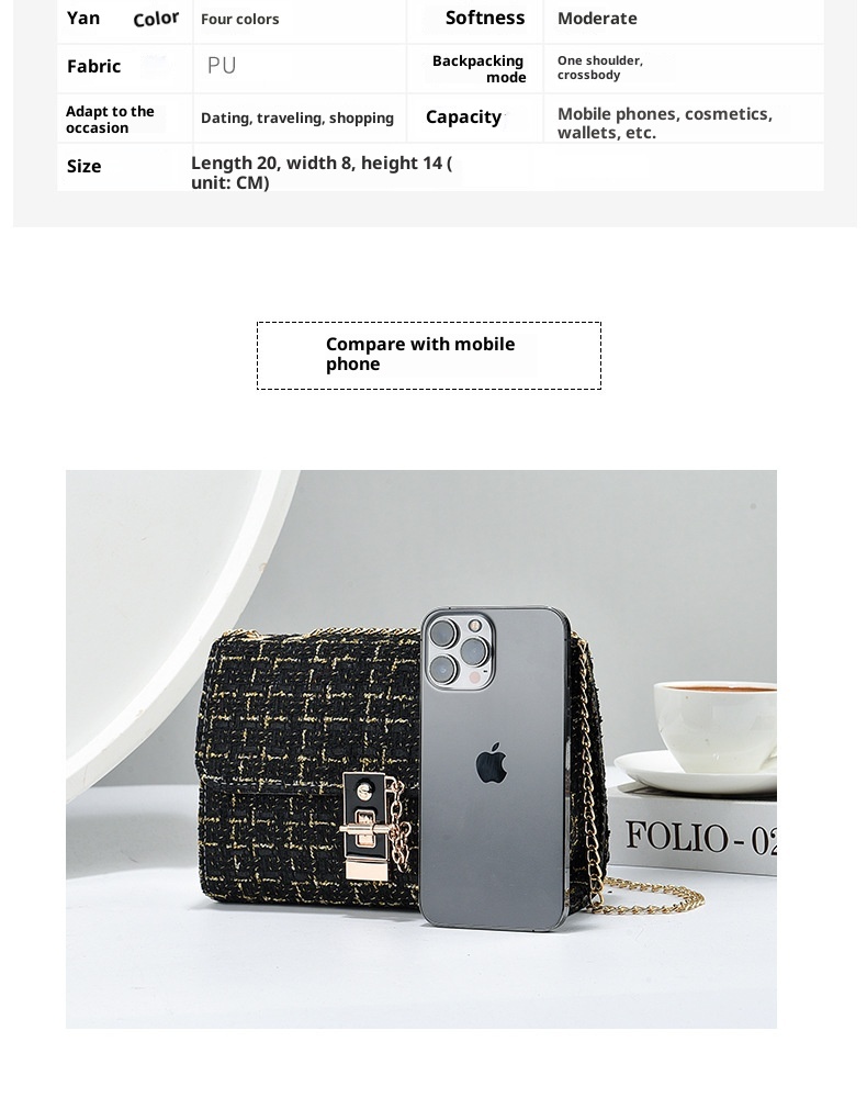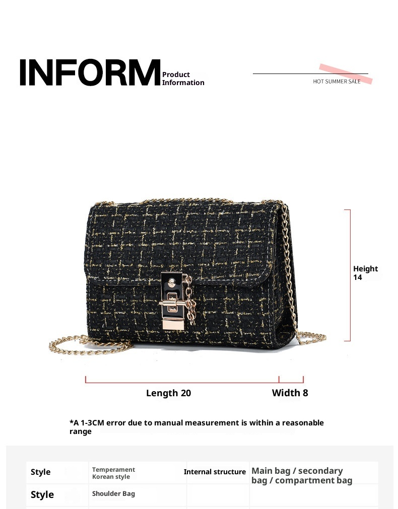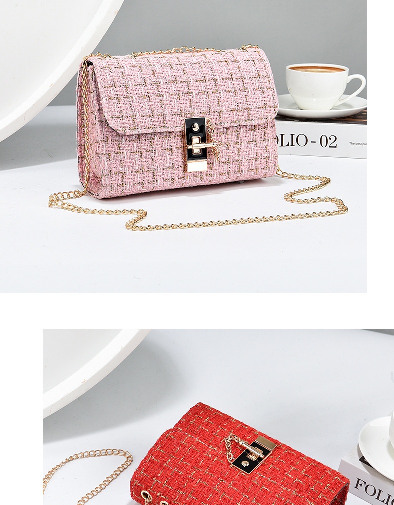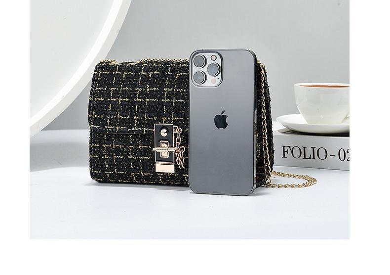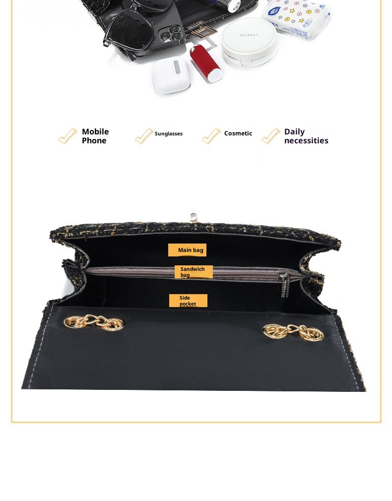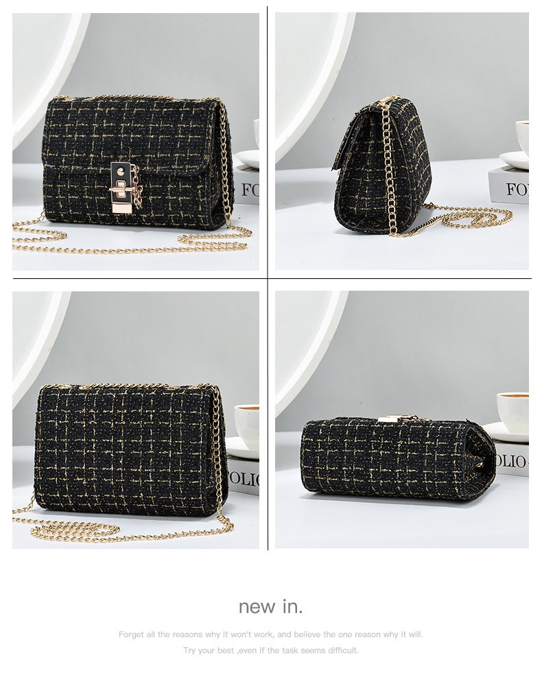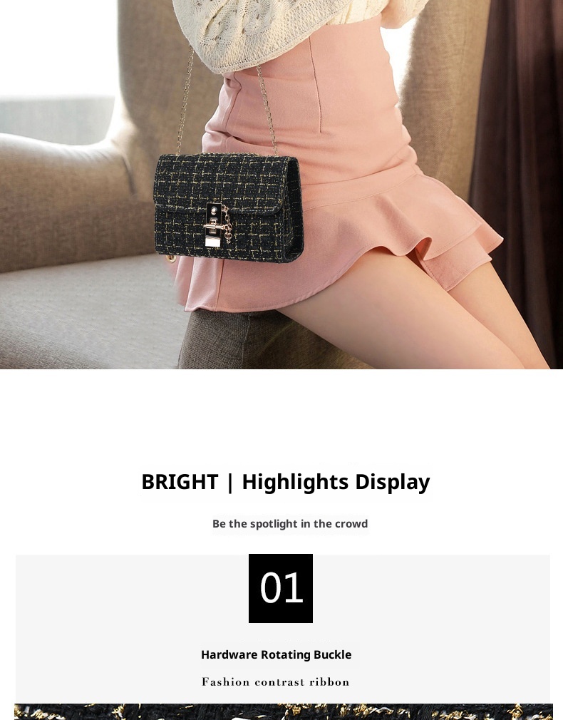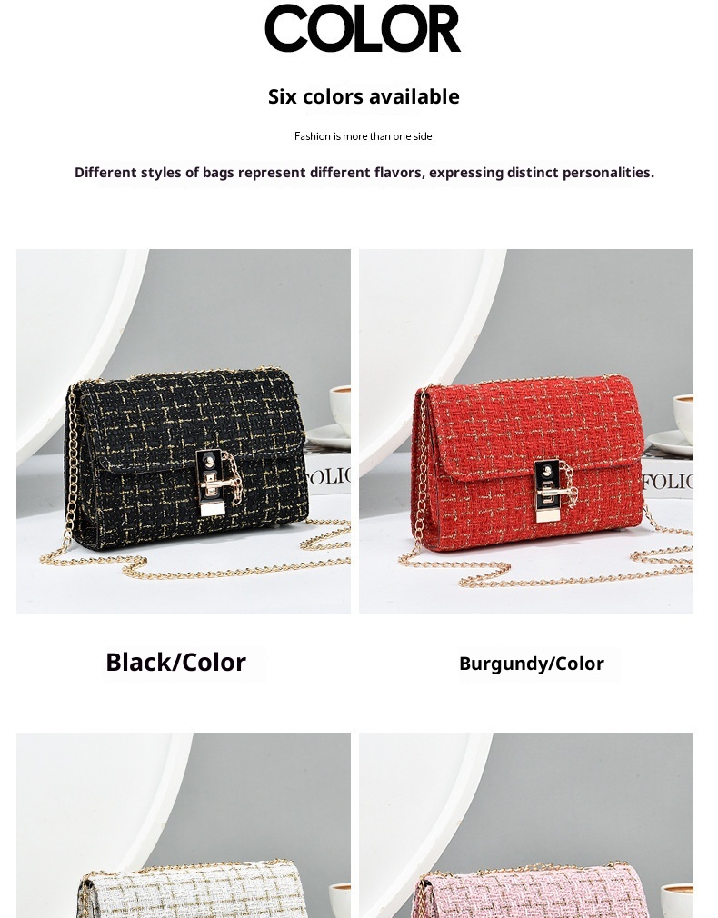 Woolen Twist Lock Shoulder Bag Versatile Women's Bag Gold Silk Contrast Color
